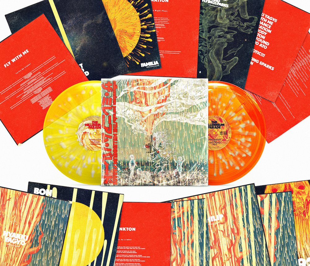 合わせてデビューアルバム『THE MILLENNIUM PARADE』の12インチアナログ盤が、完全生産限定で8月11日(水)にリリースされることが決定。12インチアナログサイズの3面紙ジャケットにクリアスプラッター盤仕様の2枚組ディスク、12インチサイズのリリックカードが14枚封入されており、アートディレクターを内包するmillennium paradeならではのアートワークが印象的な作品となっている。同作の予約は本日よりスタートしている。