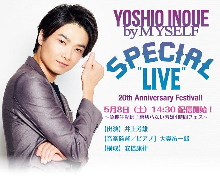 4月の緊急事態宣言の発出により、4月~5月開催予定であったアニバーサリー・ツアー全8公演のうち7公演が中止となったが、「急遽生配信!裏切らない芳雄4時間フェス」と題して、参加可能なツアー出演予定ゲストが集結し、2021年5月8日(土)東京国際フォーラム・ホールA(東京都)で、無観客にて生配信を行うことが決定した。