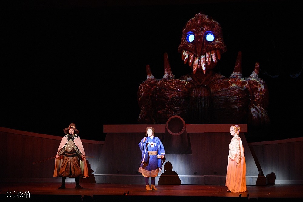 「これは宙乗りの曲という認識でしたから、ナウシカが舞台後方からゆっくりと回転して真ん中に現れ、そこに『風の谷のナウシカ』というタイトルが映し出されたのを目にした時は驚きました。そしてそれがとてもうまくはまっていたのでうれしかったです。演出のG2さんに感謝しています」