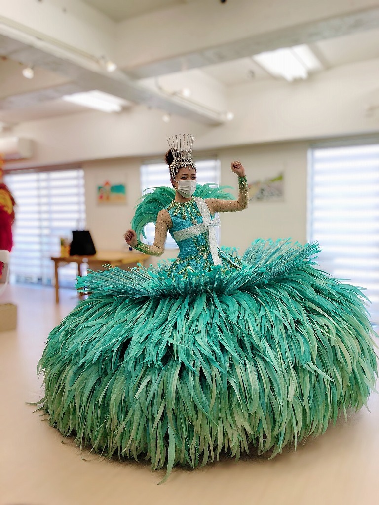 みんなそれぞれ何役か演じたりしますが、私は最初のシーンで“シバの女王”を演じます。中東みたいな雰囲気のものは大好きですし、衣裳も素敵なので、楽しみたいなと。パリのシーンでは“ダイヤモンドの歌手”に扮して、キラキラした衣裳で主題歌「LUXE ‐リュクス‐」と、「愛の讃歌」や「黒い鷲」といった有名なシャンソンも歌います。「愛の讃歌」は本当にいい曲だなと改めて感じていて、ずっと聴いていたら夜中涙が出てきてしまったくらい。私自身いい曲に出会えていますね。いろいろな国を旅するレビューですが、音楽の旅行もできる感じがしていますし。二幕では“パッショネイトの歌手”として、サンバの衣装を着て、「ラ・バンバ」をみんなで歌います。この衣裳が、まさにリオのカーニバルで使われているような緑の豪華絢爛なものなんです。柚希礼音さんは羽根を背負ってのダルマの衣装で、ハイレグもすごくて。他にもいろいろなシーンがありますが、私一人だけでも本当にいろいろな世界を旅できる感じです。