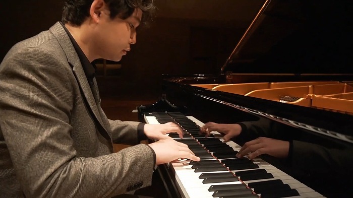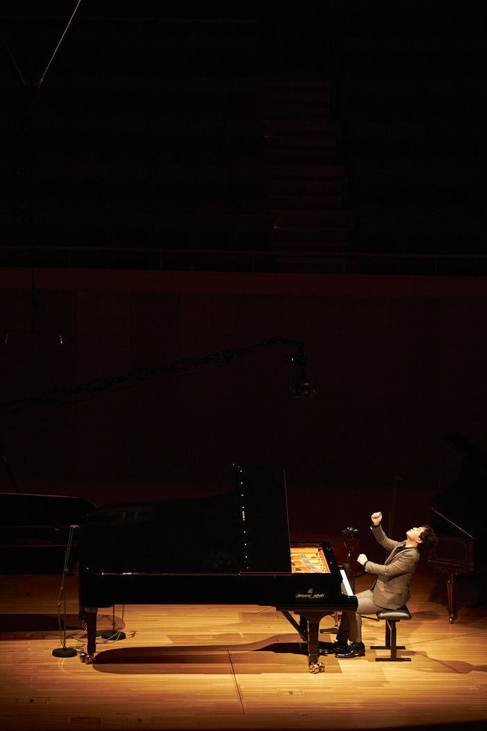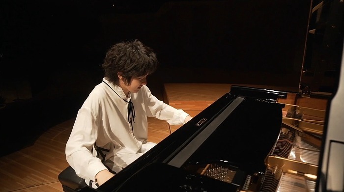 言うまでもないが、冴えわたるテクニックとリズム感で角野は、この難曲を精緻に弾きあげてゆく。スケールの大きな作品の中に意図された詩的なコンテクストをいとも鮮やかに構築してしまうのだ。ダイナミズムあふれるオクターブの連打は、これから展開される不吉な変奏の予兆。まさに、自らのロールモデルとするリストが乗り移ったかのような姿と演奏に高揚感が冷めやらない。恐らく、モニター前の視聴者は、角野の手元も表情もつぶさに見えるので、よりいっそうその臨場感に浸れたことだろう。劇的なコーダに込められたよりいっそうの深淵なるポエムが、本日の角野の演奏のすべてを語るかのように意義深かった。