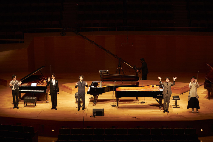 大フィナーレの演奏後、4人の出演者全員とMCの日野が揃って、来年度の開催に向けてエールを交わす。本番一週間前の緊急事態宣言発令にもかかわらず、大成功のうちに幕を下ろした2021年の『スタンドアップクラシック ピアニズム』。ストリーミング配信は5月10日(月)まで楽しめるというのも実に嬉しい。生配信を見逃してしまったファンたちも、ぜひとも、モニターの前で、4人のピアニストによる華麗なる世界を味わってみてはいかがだろうか。