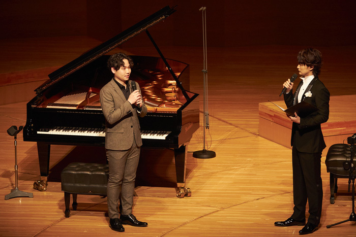 紀平のソロステージが終わると、続いての二人目のピアニスト髙木竜馬が登場。現在、ウィーン在住で、日本とウィーン間を頻繁に往復しながら演奏活動を続ける髙木だが、はじめに、日野からウィーンが生んだピアノの女王、ベーゼンドルファーを髙木自身が選んで演奏する意義を尋ねられる。