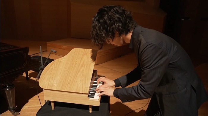 そして、ソロステージ最後を飾るのは、サン=サーンス作曲、リスト編曲による「死の舞踏」。オリジナルは交響詩だが、リストがピアノ独奏用にトランスクリプション(編曲)したものだ。古典楽器の演奏を続けて聴いた後に、近代メカニズムを持つスタインウェイのフルコンサートグランドで聴くこのリストによる壮大なピアノ作品は何とも印象深い。エラールとスタインウェイを交互に弾くという、角野の心憎い試みは見事なまでに功を奏していた。