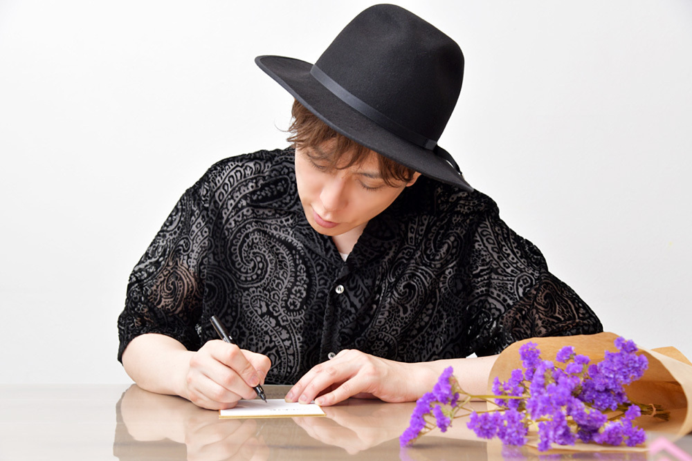 これは、花の定期便サービス「LIFULL FLOWER」とのコラボレーションによるもので、月に2回、堂珍の監修した生花1~4本に直筆メッセージ(印刷)入り生写真が届くというもの。「おうち時間」が増えている暮らしの中で少しでも気分転換が出来るようにという思いや、近年の“フラワーロス”問題解決への貢献への気持ちがあった堂珍嘉邦が、公式ファンクラブ「Drunkboat」の会員向けに開始したという。