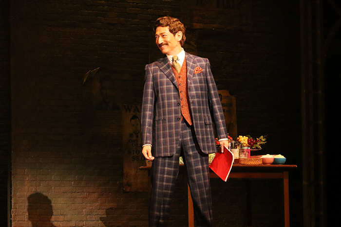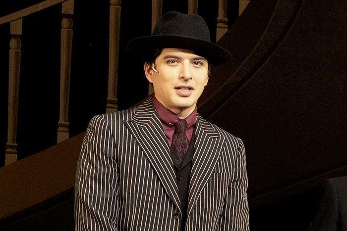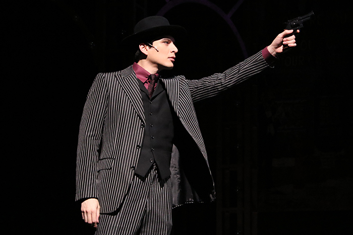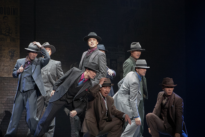 そんな中、とうとうデビッドの戯曲がブロードウェイで上演できることになる。しかし、プロデューサーが見つけてきた出資者はギャングの親玉ニック(橋本さとし)。キンキン声でろくにセリフも言えない愛人のオリーブ(平野綾)を主演にするよう要求し、部下のチーチ(城田優)にオリーブの護衛と監視を任せる。