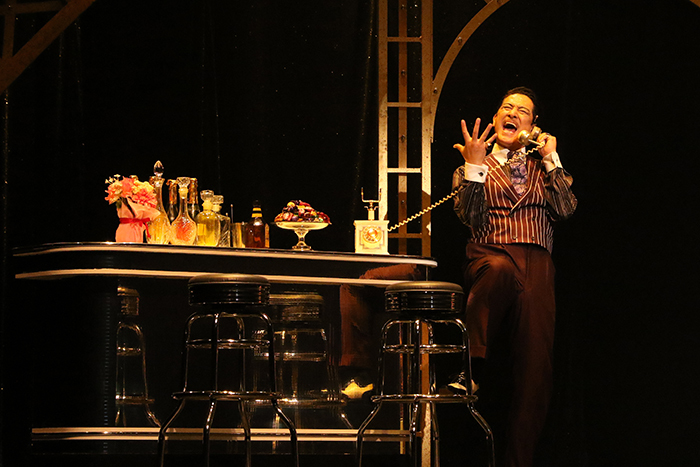 ギャングの親玉・ニックを演じる橋本は、ギャングらしい迫力を見せたかと思うと愛人にタジタジになるなど、ギャップで笑いを誘う。