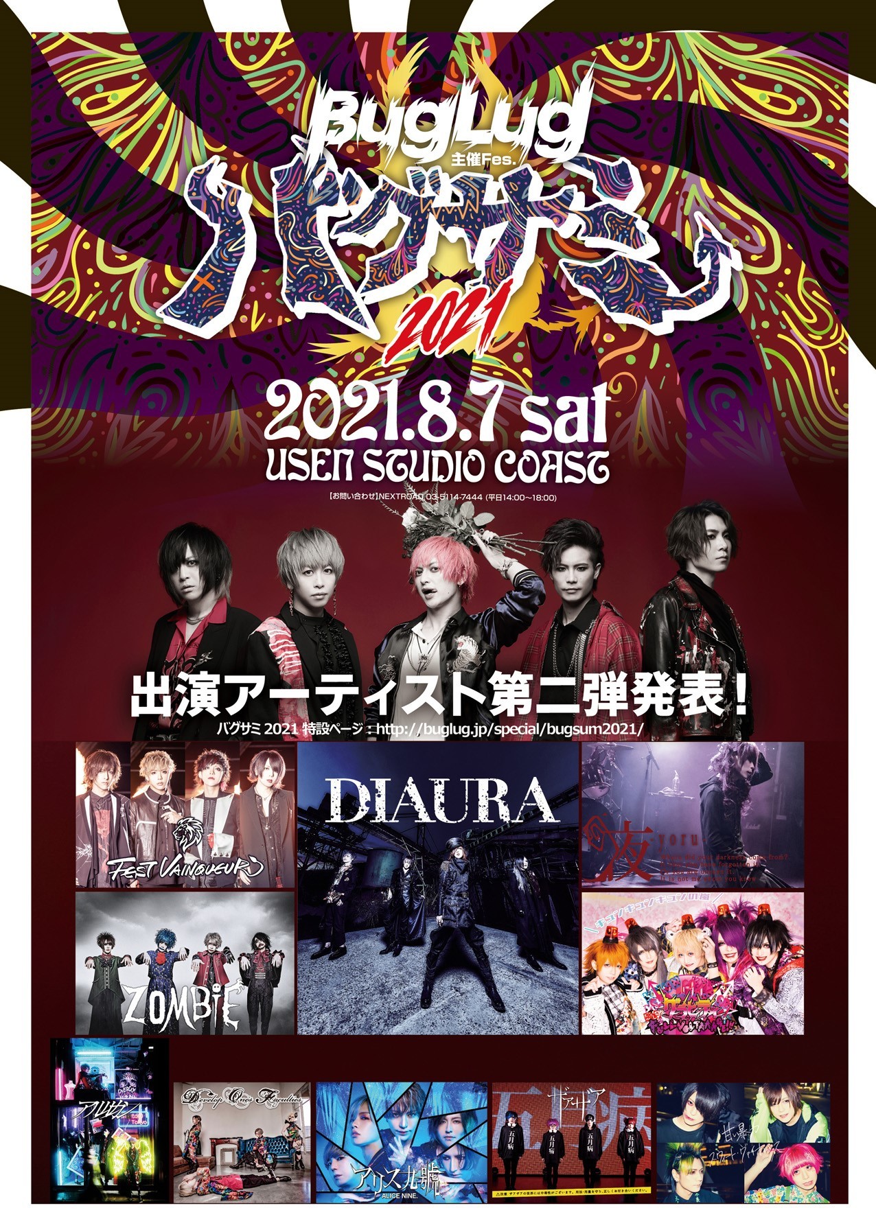 8月7日(土)USEN STUDIO COASTにて、2年ぶりに開催されるBugLug主催の音楽フェス『バグサミ2021』の出演アーティスト第2弾が発表された。