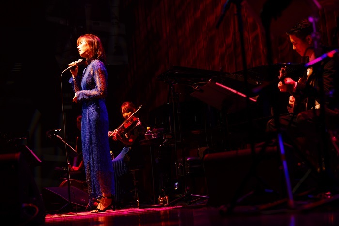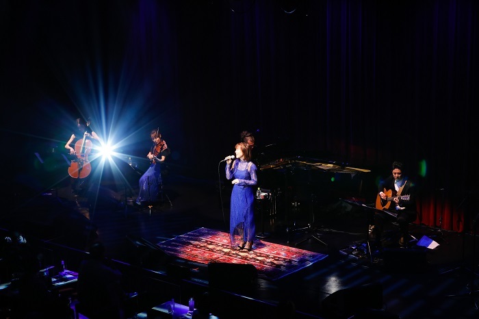 続いて、ビルボードライブの雰囲気にピッタリな、昨年12月にリリースされた初のカバーアルバム「うた弁 COVER」から「黄昏のビギン」、「SWEET MEMORIES」、「あの日にかえりたい」、「いい日旅立ち」、「異邦人」がメドレーで披露される。ライブ終盤では、半崎美子の代表曲でもある「サクラ〜卒業できなかった君へ〜」を歌唱。