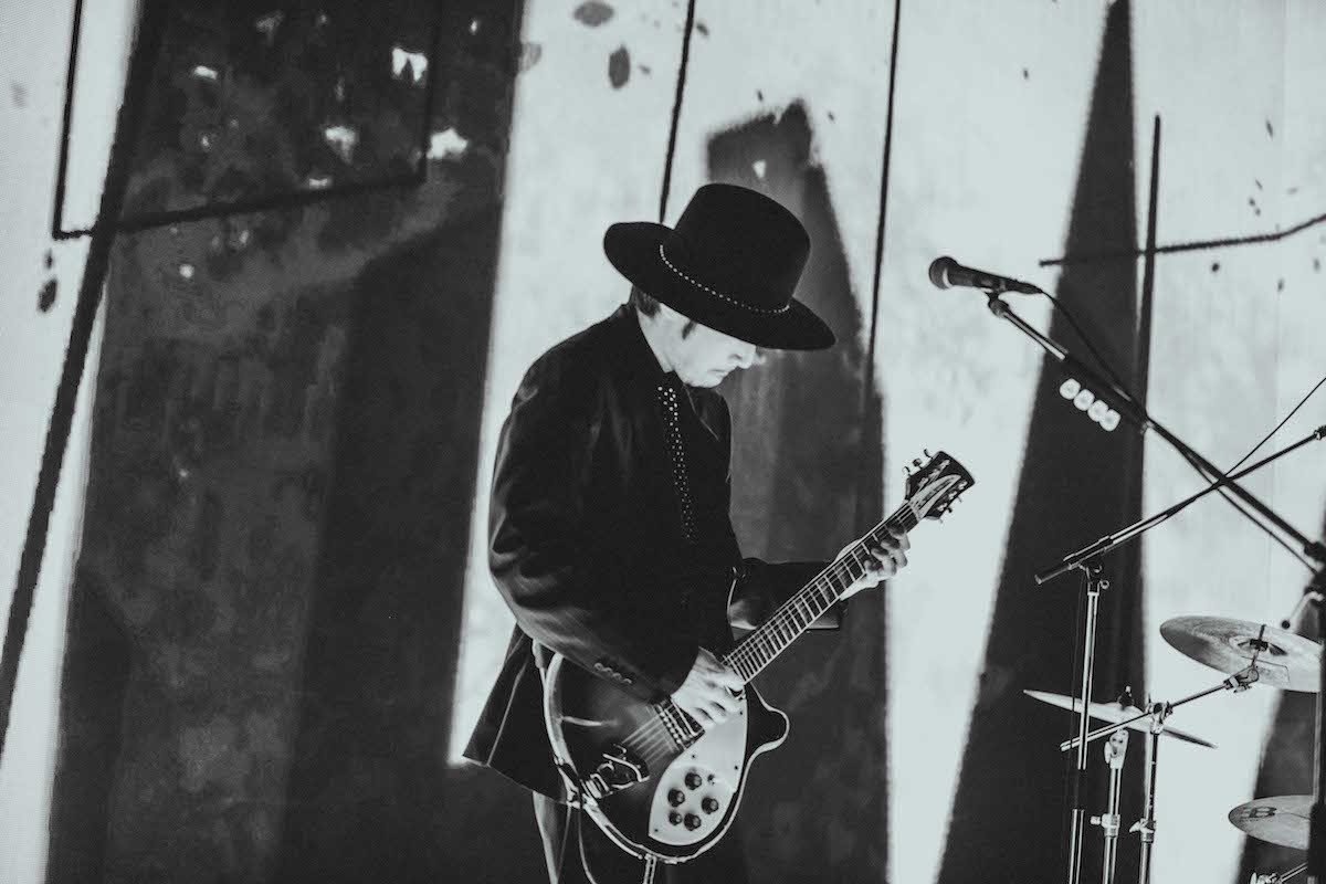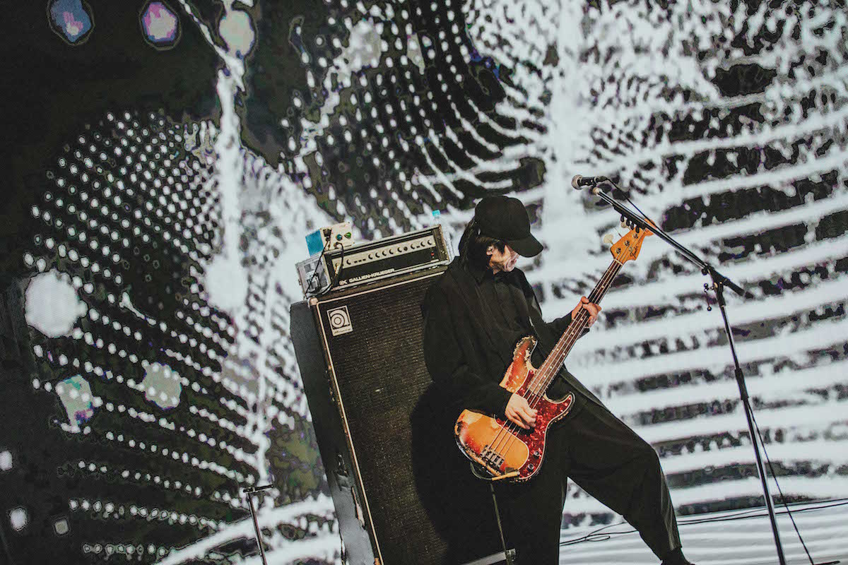 トレードマークのハット、ブラックスーツにネクタイで決めた大木がこの日の趣旨を丁寧に語る。「アルバムは八割方できていて、今日はその八割を全部やります」と宣言する。3曲目「Rebirth」は昨年9月に配信リリース済みの曲で、サウンドはある意味ACIDMANの王道路線、大木の弾く切れ味鋭いギターリフ、リズム隊の繰り出すファンクでロックでダンスなグルーヴに乗って軽やかに疾走する、ライブ映え間違いなしの1曲。続く「灰色の街」も昨年にリリースされた曲で、生のライブでも聴いているが、ここでは配信ならではのエフェクトを使い、モノクロームな映像から曲がぐんぐんエモーショナルに盛り上がってゆき、ラストは一気にカラー映像に変わるという劇的な演出がぴたりとハマった。ACIDMANの楽曲にはそれ自体にドラマがあり、照明や画像エフェクトとの相性が極めていい。最新機器を備えたBLACKBOX3のシステムならばなおさらだ。