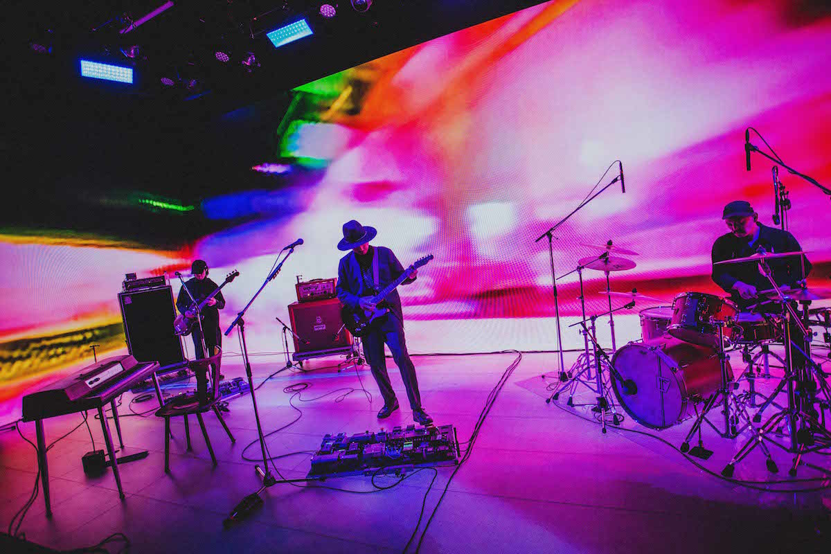 爆発する色彩とめくるめく仮想現実の映像が、画面を閉じた今も目に焼き付いて離れない。5月21日19時に初回配信された『ACIDMAN ニューアルバム配信ライブ』。それは未だタイトルも発売日も発表されていないニューアルバムからの新曲を披露する、ロックバンドとして前代未聞の試みというだけではない。巨大な4面LEDパネルとXR映像のメディアサーバーを常備した新設スタジオ「BLACKBOX3」をフルに活用した、新時代のライブパフォーマンスの扉を開ける挑戦だ。五感を震わす光と画像、そして輝く新曲たち、すべてが至高のひとときだった。