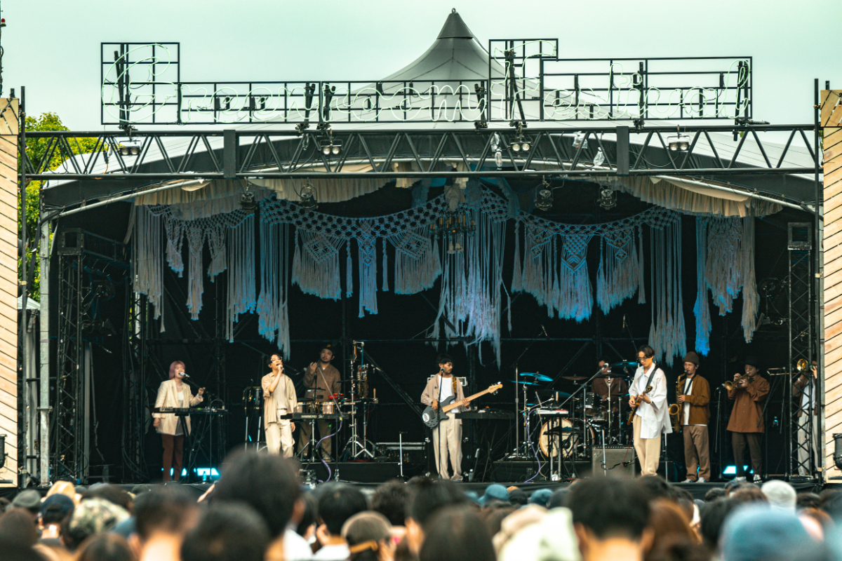 初日、2年ぶりの開催を待ちわびた来場者たちの期待が高まる中、トップバッターを務めたのはLUCKY TAPES。メンバーは来場者の温かい拍手と共にBLUE SKY STAGEに登場し、最高のスタートを切る。その他、TRI4TH、NakamuraEmi、TENDRE、そしてラストにはSIRUPが登場し、観客の熱は最高潮に。先に出演していた、TENDREも再度ステージに参加し、PLAY feat TENDREも披露。