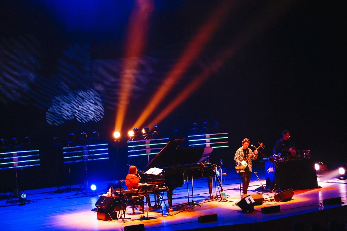矢野顕子のファンならば、彼女が津軽三味線の名手と共演したと聞いても驚かないだろう。青森は育った場所であり、しばしば民謡を彼女ならではの作法で取り上げてきたし、そもそも彼女のピアノ演奏のダウントゥアースなグルーヴはねぶたの高揚に確かに通じているように感じられる。逆に上妻宏光のファンは、日本のみならずアメリカでもジャンルを超えて高い評価を集めているアーティストと彼が共演したのを知っても戸惑ったりしないだろう。上妻自身が国境もジャンルも超えて、果敢に活動のフィールドを広げていく表現者なのだから。それでも、そういう二人がユニットを結成して作ったアルバムから聞こえてくるのがどんな音楽なのか、それを予想するのはけっこう難しいことだったかもしれない。昨年3月に届けられたアルバム、その名も『Asteroid and Butterfly』がその回答だったわけだが、“思った通りだ!”と喜んだ人も“そう来たか”と唸った人も、共通して願ったのはこの音楽をぜひライブで味わってみたいということだったはずだ。