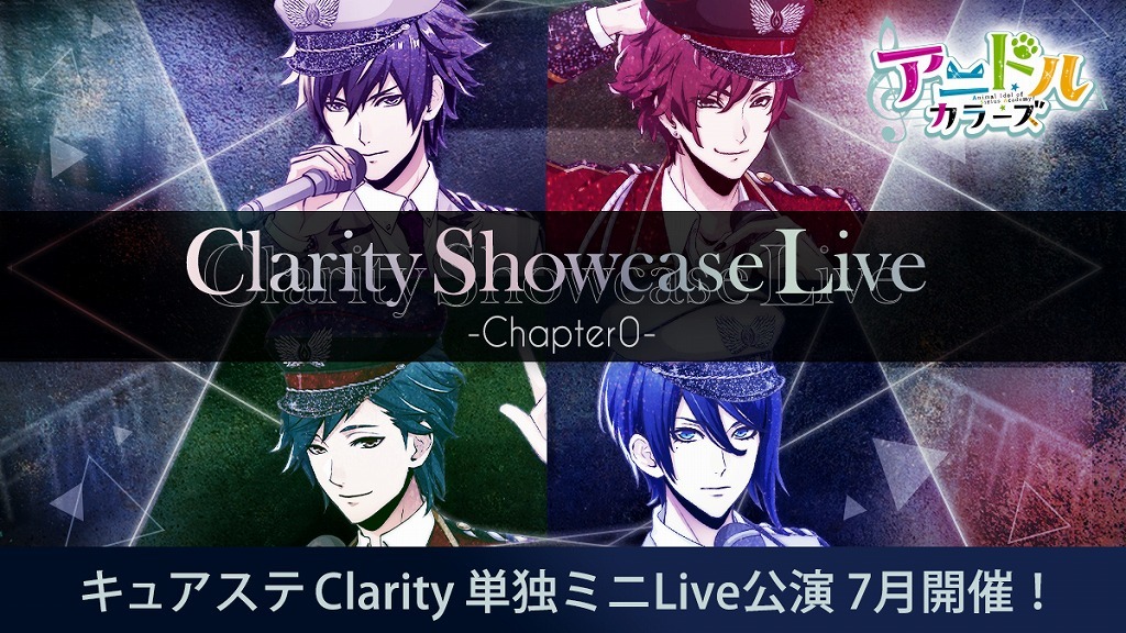 2021年7月20日(火)~7月22日(木・祝)赤羽ReNY alphaにて「アニドルカラーズ」の舞台版『アニドルカラーズ キュアステージ』に登場するClarity(クラリティ)の初の単独ミニライブ公演となる、『Clarity Showcase Live -Chapter0-』を開催することが発表された。