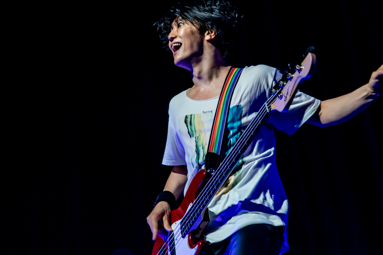 活動初期から変わらないSE=イズミカワソラ「絵の具」をバックに斎藤宏介(Vo/Gt)、田淵智也(Ba)、鈴木貴雄(Dr)が登場。斎藤がスキャット的にイェーイと声を張り、田淵&鈴木がツアータイトルをコーラスする「overture~Spring Spring Spring~」は、『Spring Spring Spring』限定のオープニングナンバーだ。斎藤がロングトーンすると、バンドサウンド全体が勢いを増し、最高潮に達したところでストップ。そこから「おまたせっ!」(斎藤)と「フルカラープログラム」が始まっていく。「フルカラープログラム」はインディーズ期からある曲だけに、今では意味が伴い特別な存在になりつつある。景気づけのアッパーチューン的な立ち位置で演奏されるのは久々な気がするし、2曲目でいきなりというのはなかなか贅沢だ。赤い照明がスリルを引き立てる「プロトラクト・カウントダウン」では、間奏にあるドラムとベースそれぞれの見せ場、そのあとのギターソロで以って個々のパワーアップぶりを颯爽と見せる。軽快なギターリフから「23:25」に入ると、躍動的なビート、激しく動くベースラインを前に観客がその場で飛び跳ねた。