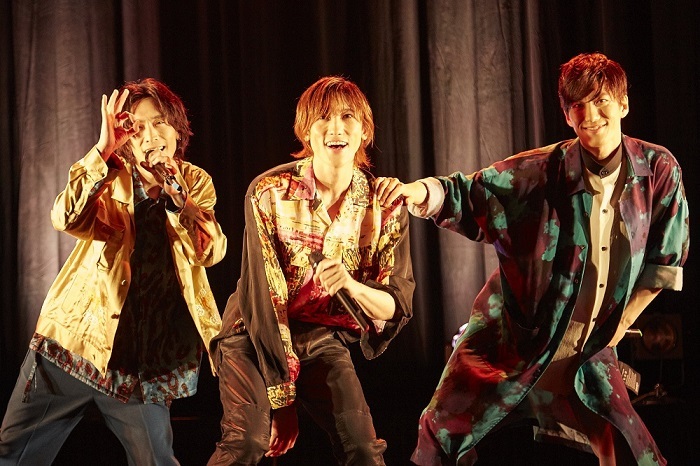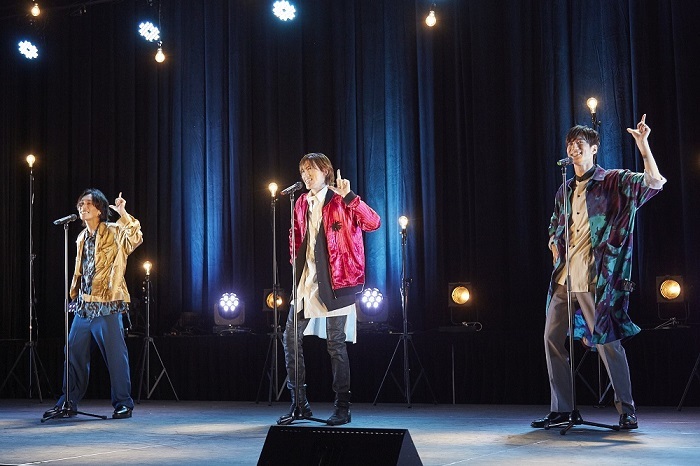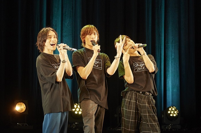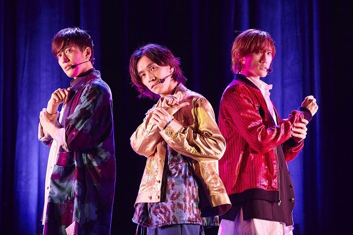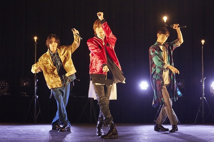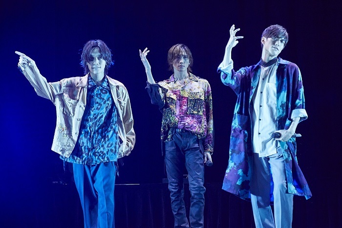 ファンから不動の人気を誇るナンバー「Butterfly」も披露し、ライブ中盤では3ピースピアノバンド「WEAVER」の杉本雄治が作曲を手掛けた「HOME」を披露。これまでダンサブルにパフォーマンスしていた彼らが一変、杉本ならではの穏やかなサウンドに乗り、ミュージカルで活躍する3人の持ち味を活かしたコーラスアンサンブルで柔らかくしっとりと歌い上げた。