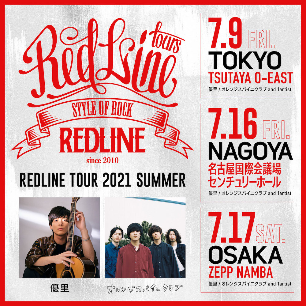 『REDLINE TOUR 2021 SUMMER』と銘打たれた今回は、東京・TSUTAYA O-EAST、愛知・名古屋国際会議場 センチュリーホール、大阪・Zepp Nambaの3公演が行われる。