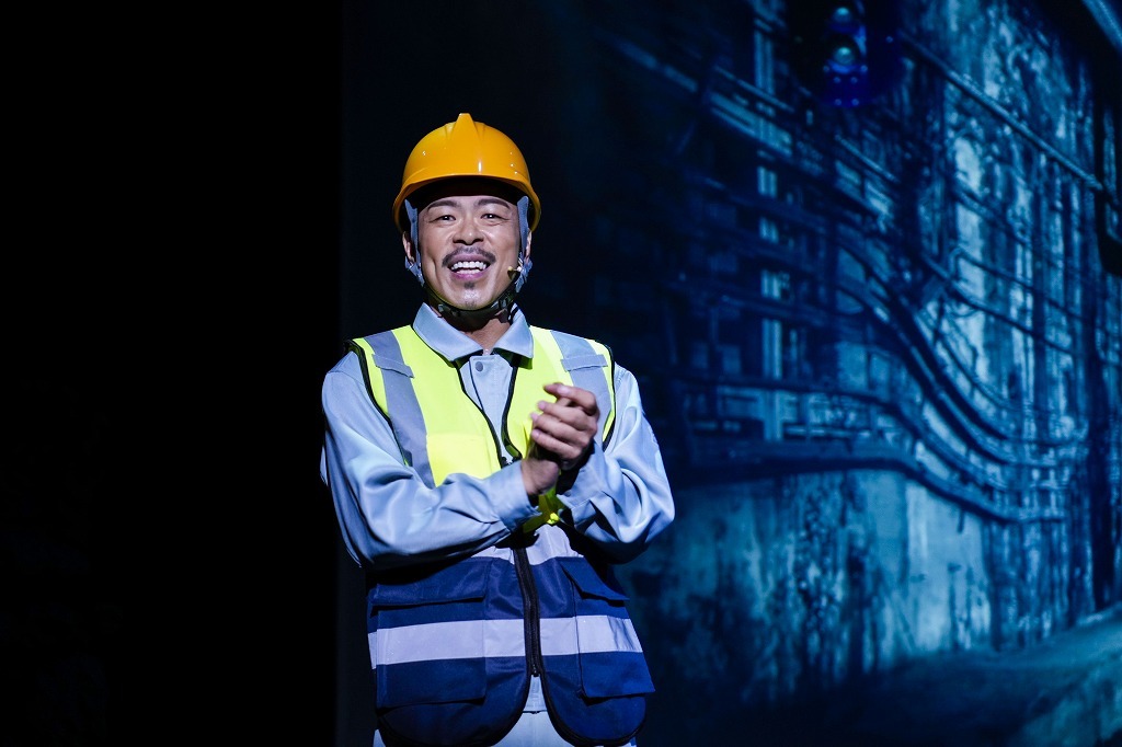舞台が始まると、そこは地下鉄の通るトンネルの中。松本は、地下鉄の工事をしているのだが、作業中、スコップが刺さって抜けなくなってしまう。松本は電車が来る前に、そのスコップを抜こうと必死なのだが、電車は彼のもとに迫っていた……。