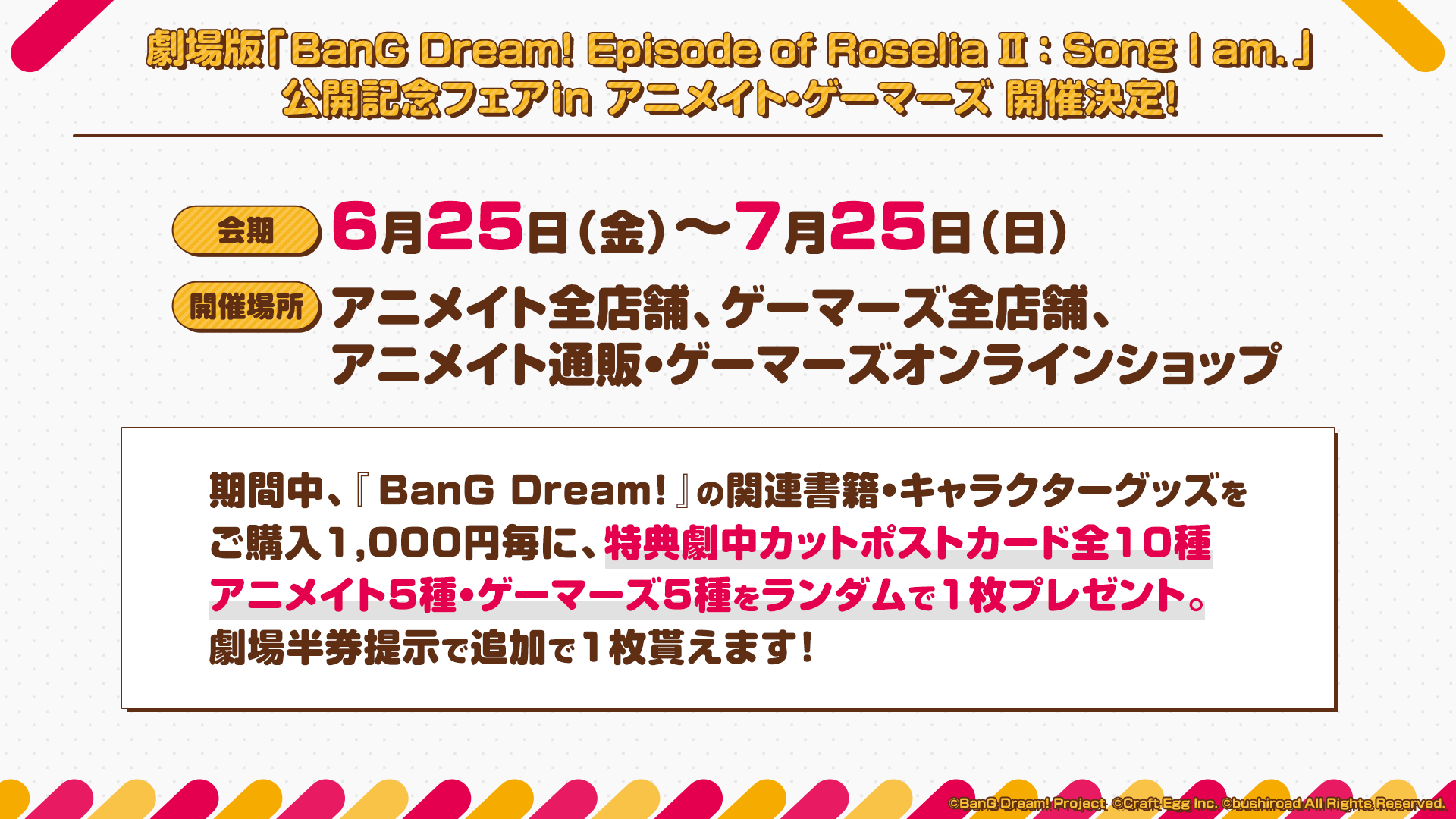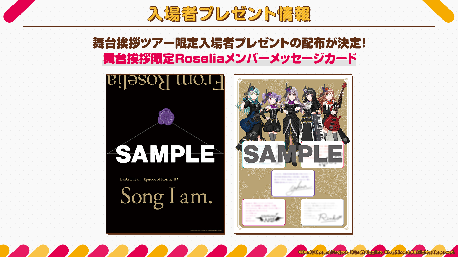 6月6日(日)に開催された『バンドリ!劇場作品大発表会』にて、劇場版『BanG Dream! Episode of Roselia II : Song I am.』の新情報が発表され、Roseliaキャストの舞台挨拶ツアー開催の決定、公開1週目の入場者プレゼントなどが公開された。