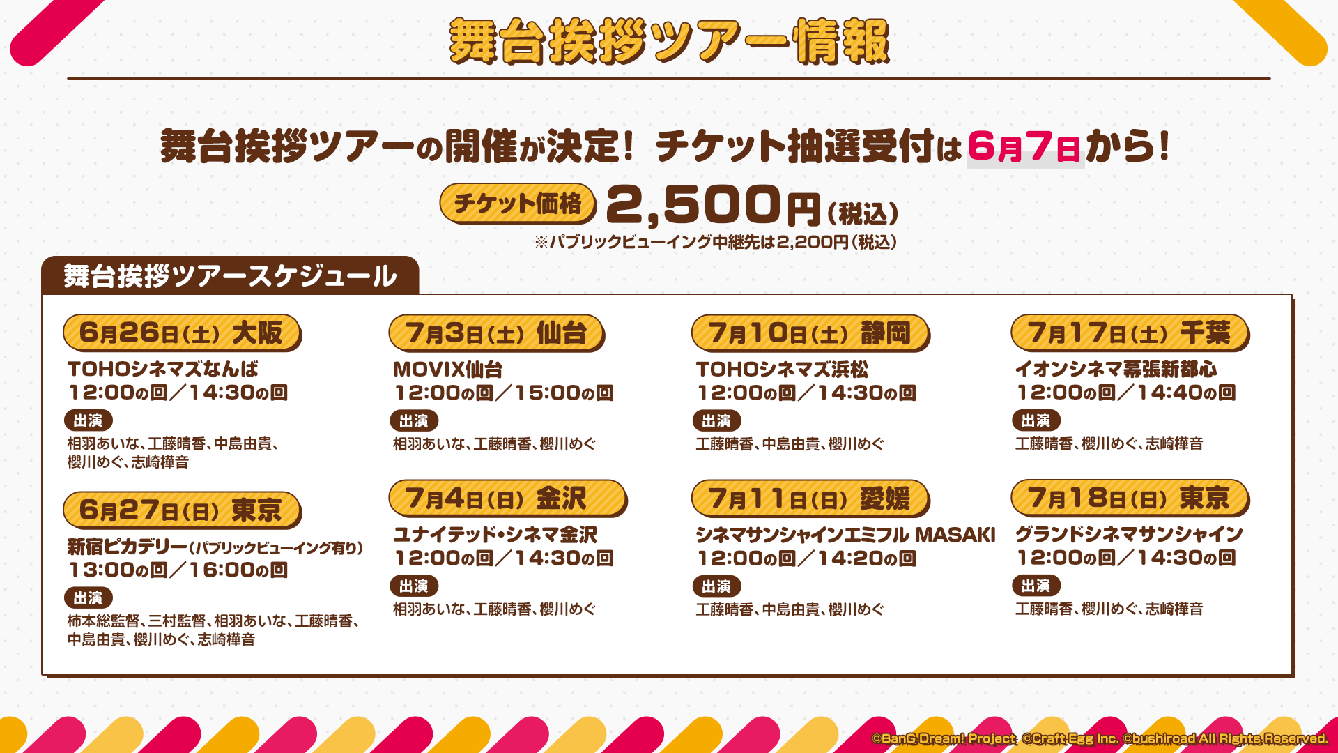 舞台挨拶ツアーの開催は6月26日(土)大阪・TOHOなんばからスタートし、全国8劇場を回る。
