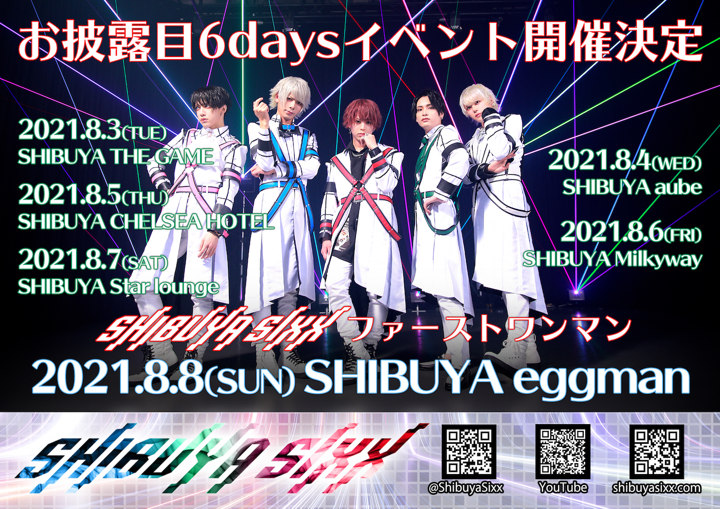 また、8月3日よりお披露目イベント『SHIBUYA SUMMER SIXX 2021 ~ Feel my SIXX SENCE ~』を6日間連続で開催。なお、最終日の8月8日(日)はSHIBUYA eggmanにてファーストワンマンライブが行われる。
