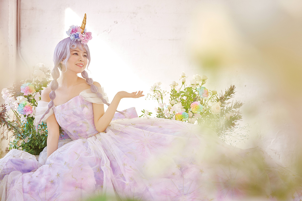 新着ドレスはロリータテイストのボンネットハット付き白ドレスや、パンツスタイルを取り入れたジェンダーレスなドレス、ユニコーンをイメージした角がヘッドドレスの「ゆめかわ」ドレス、赤×黒のロックテイストなドレス、ロンドンをイメージしたプリント柄ドレスと、バラエティに富んだ全5着を発表。