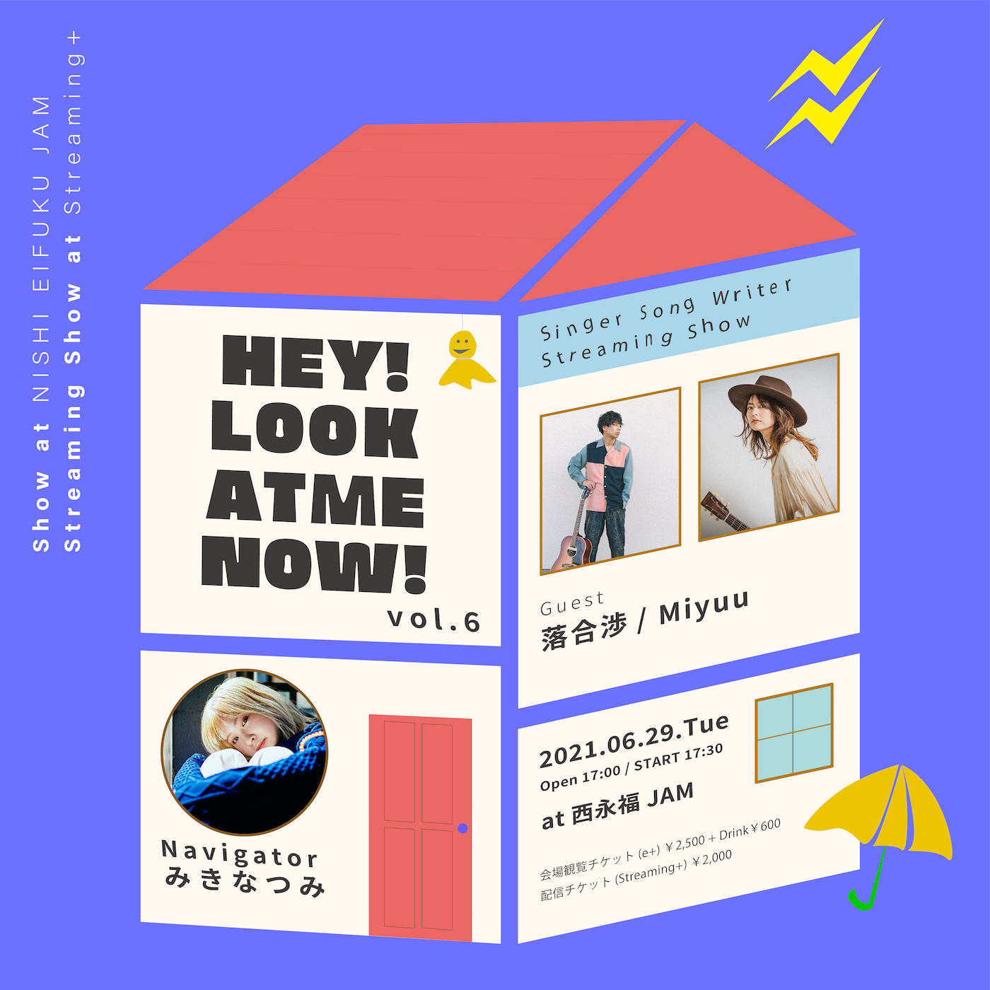 『HEY! LOOK AT ME NOW! vol.6』は6月29日(火)17時半より、イープラス・Streaming+を通して生配信される。今回より配信だけではなく、観覧を入れた有観客開催でも行われる。ゲストには落合渉、Miyuuの出演が決定。また昨年11月よりスタートした『HEY! LOOK AT ME NOW!』の初回放送から約半年間、番組ナビゲーターを努めたみきなつみが今回のvol.6で卒業することを発表した。