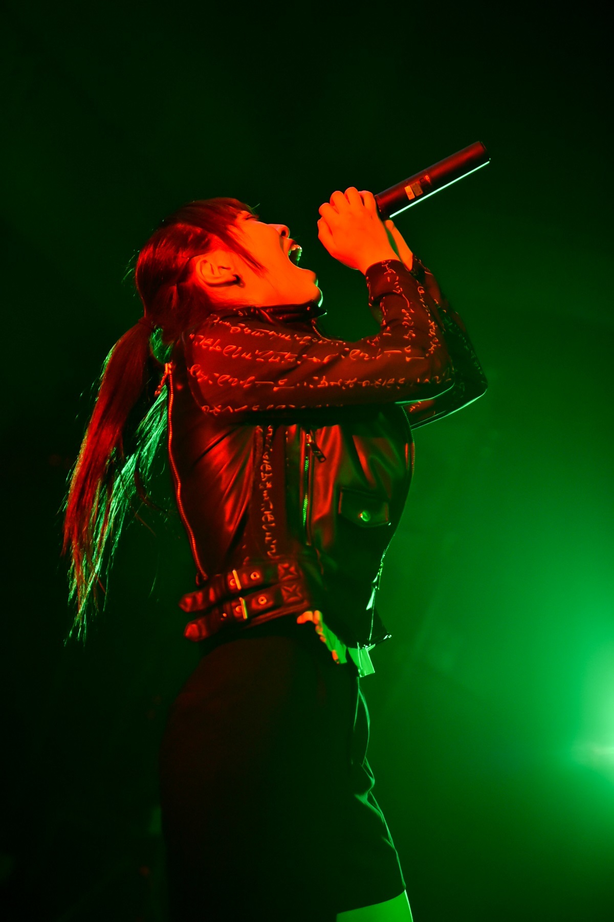6人ひとまとまりできっちり神激を歌うのではなく、私はここではこんなラップを、じゃあ私はこの曲ではこんな歌を、など、いまの彼女たちはメンバー各々がまるでバンドのように呼吸を合わせたり、ぶつかったり、駆け引きをしながらこのライブを作っているように見えた。これも、間近で対バン相手の生演奏をたくさん見てきた彼女たちが、自然と吸収してきた部分なのだろう。さらに驚いたことがある。それは、スピーカーから流れるサウンドだ。神激のようにロックをバックグラウンドにもつグループは、その成長過程の途中から“生バンド”をバックに配置し、サウンドをマッシュアップしていく展開がこれまでのやり方だった。だが、神激は違った。今回の『LEGIT』でも、これまで通りのマニピュレーターを入れた独自のサウンドメイクで戦っていて、これが驚いたことに、生バンド並みのサウンドのクオリティーに到達してたのだ。その証拠に、リビジョンを観た後に神激を観ても、その音に物足りなさは微塵も感じなかった。聞けば、この『LEGIT』開催にあたってサウンドチームはサウンドシステムを一新したのだという。バンドサウンドにブレイクダウン、美しいストリングスから、繊細なピアノに到るまで、洪水のように詰め込まれた音が圧倒的な熱量をもって畳み掛けてくる神激のラウディーなサウンド。これらをデジタルで徹底的にコントロールしながら、バンドを彷彿させる生っぽい高まりやうねり、迫力を音像へと落とし込んで構築していくセンスは、まるで元バンドマンのスクリレックス(SKRILLEX)がエレクトロのみならず、ラウドロック・リスナーをも魅了していったサウンドのバランス感覚と近いものを感じる。だから、ライブで観るいまの神激サウンドは、バンド以上にバンド、そう思えて仕方がなかった。