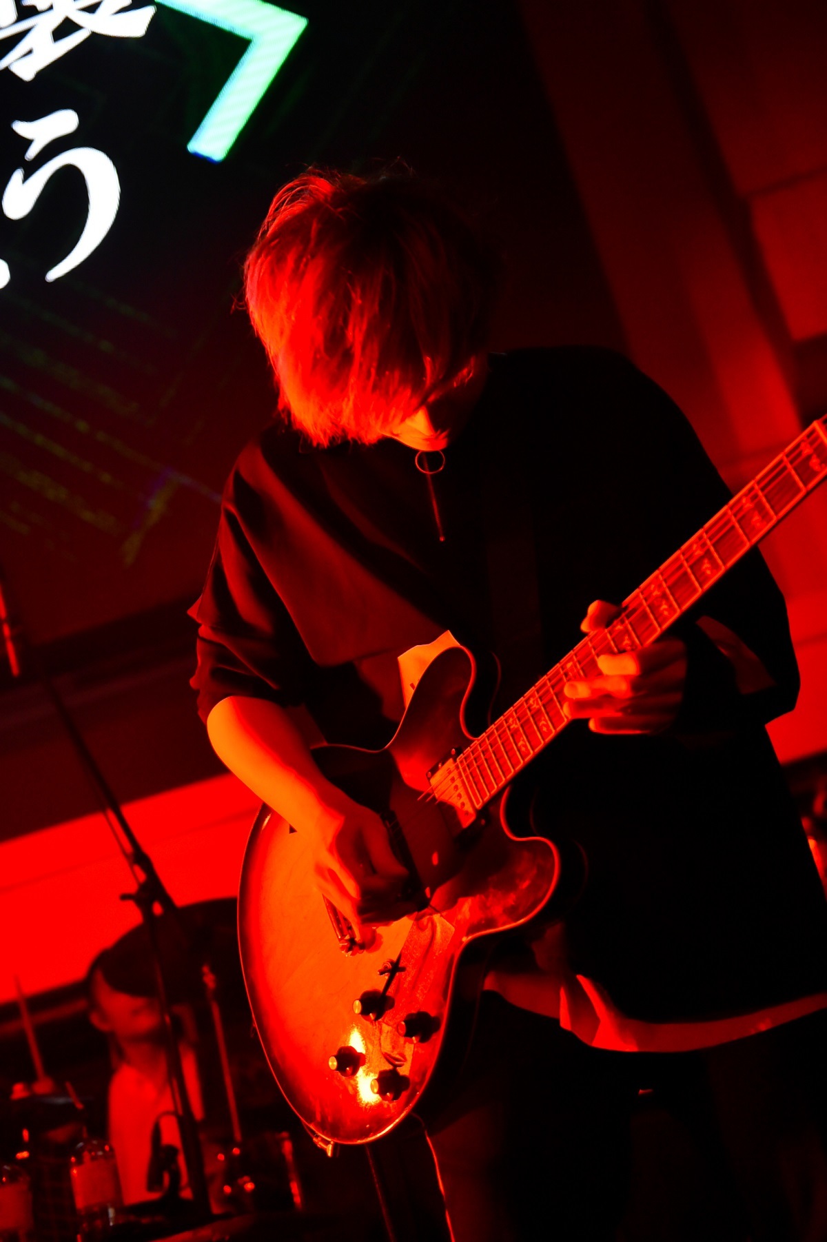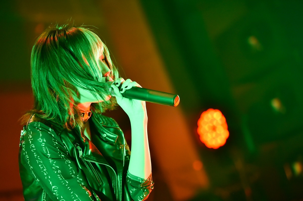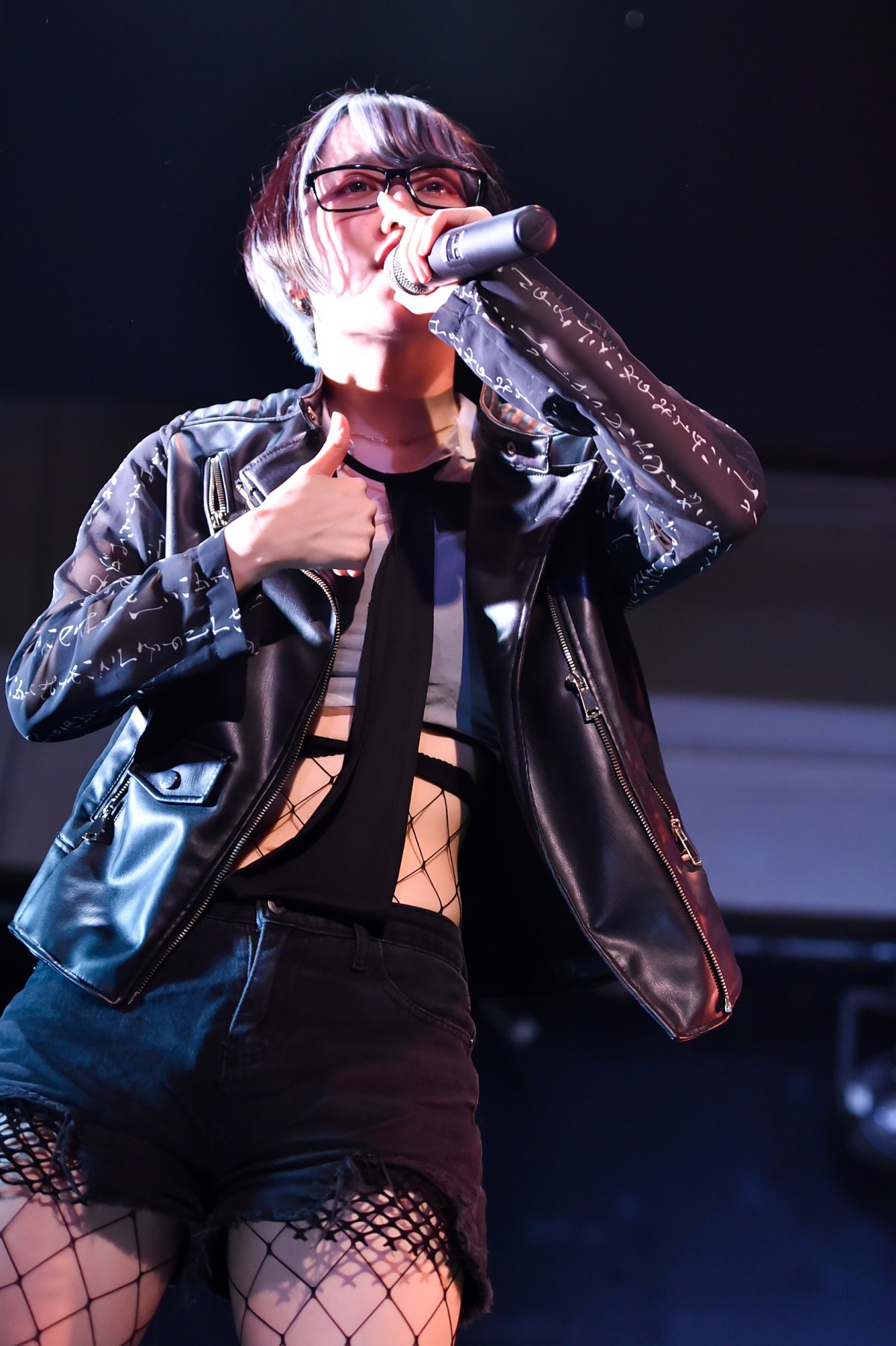 いい人になんてならなくていい、としょっぱなからリビジョンらしい歌、ロックバンドならではのサウンドで場内を圧倒したあと、自分たちは大阪のバンドであることを伝えた上で、教馬が「今日は戦いにきた。クソッたれの日常ぶち壊すために。俺らを知らない人も好きにさせますから」と宣言し、リビジョンの負け犬スピリットが場内のクラップと共鳴し、狼煙をあげていく「復讐アンセム」、続けて静かなエレクトロなサウンドにウイスパーボイスのラップをのせた「ハッピーエンド」をアクト。いまの時期はライブで大騒ぎできない分、今回は暴れ系ではないセットリストを持ってきて、個々の負け犬な部分、ダメ男にハマったオンナ心と、リスナーの内側にあるモヤモヤをナイフでグサグサ刺しまくるエグい歌詞で“現実から目を背けるな”といわんばかりに、心を暴れさせる。そこに、教馬が「僕らは夢の国のようなキラキラしたステージだけを見せにきたんじゃありません」といい放ち、この後その決定打として「友達なんて必要ない」をブチ込み、心のモヤモヤを全肯定して外に向け、発散させていく。