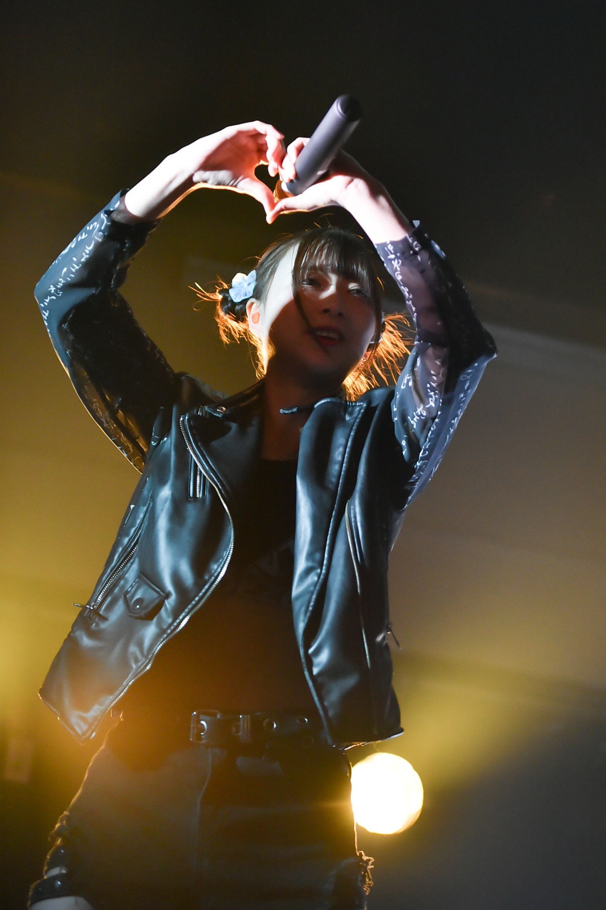 暗転した舞台に生牡蠣いもこ、実久里ことの、涙染あまね、三笠エヴァ、二日よいこ、TiNAの6人が革ジャンの衣装で登場。ロックバンドの後だからといって、ひるんでいる様子は彼女たちの表情からはまったく感じない。