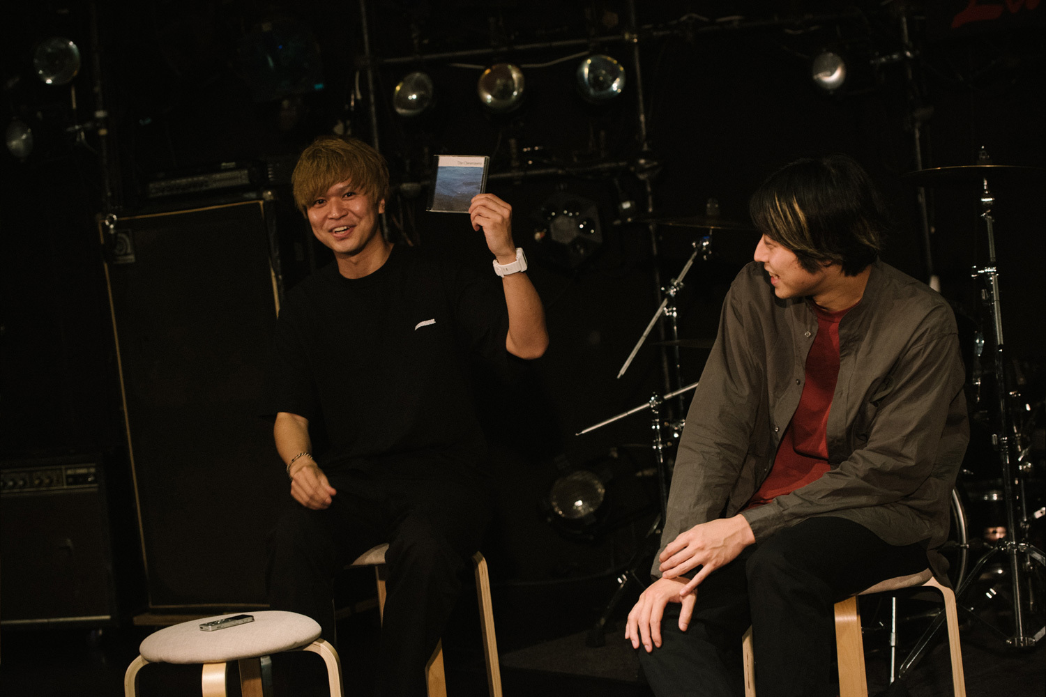 南雲:俺弾き語りは見たことなかったから「みんなで見に行こうぜ」って言って。ほかのメンバーはそこからThe Cheseraseraを聴くようになって。絶対に対バンしたいと思ってそこから誘い始めて4年、5年くらいです。だから今回受けてもらえてめちゃめちゃ嬉しかったですよ!やっとですよ!このCDの話もできてよかったです。