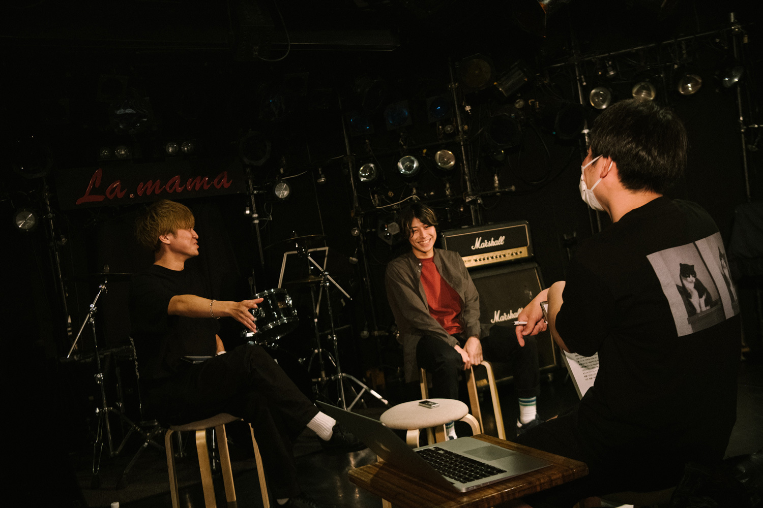 宍戸:あはは(笑)。でも、今のほうが一緒にやりやすいですね。衝動がもしあるなら出し時なんじゃないかなと思います。声太いしね。聴きやすい。La.mamaでやったライブ音源、あれってすごいピッチよくない?(笑)ピッタリハマりすぎだろと思って(笑)。でも、演奏は修正できないから、ガッツリ演奏してるなと。