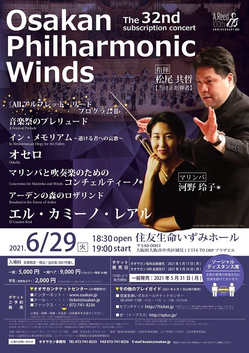 ゲストには、アルフレッド・リードに協奏曲を委嘱した河野玲子を迎え、オオサカン正指揮者の松尾共哲がタクトを振るう。