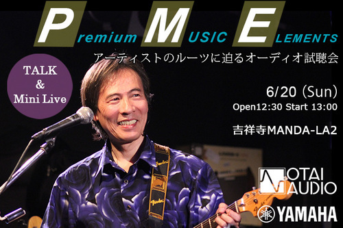 音楽を良い音で楽しみたい人のためのイベント『Music Elements』。今回はPremium版としてゲストにギタリストの鈴木茂を迎え、6月20日(日)にリアルとオンライン(配信)で同時開催される。