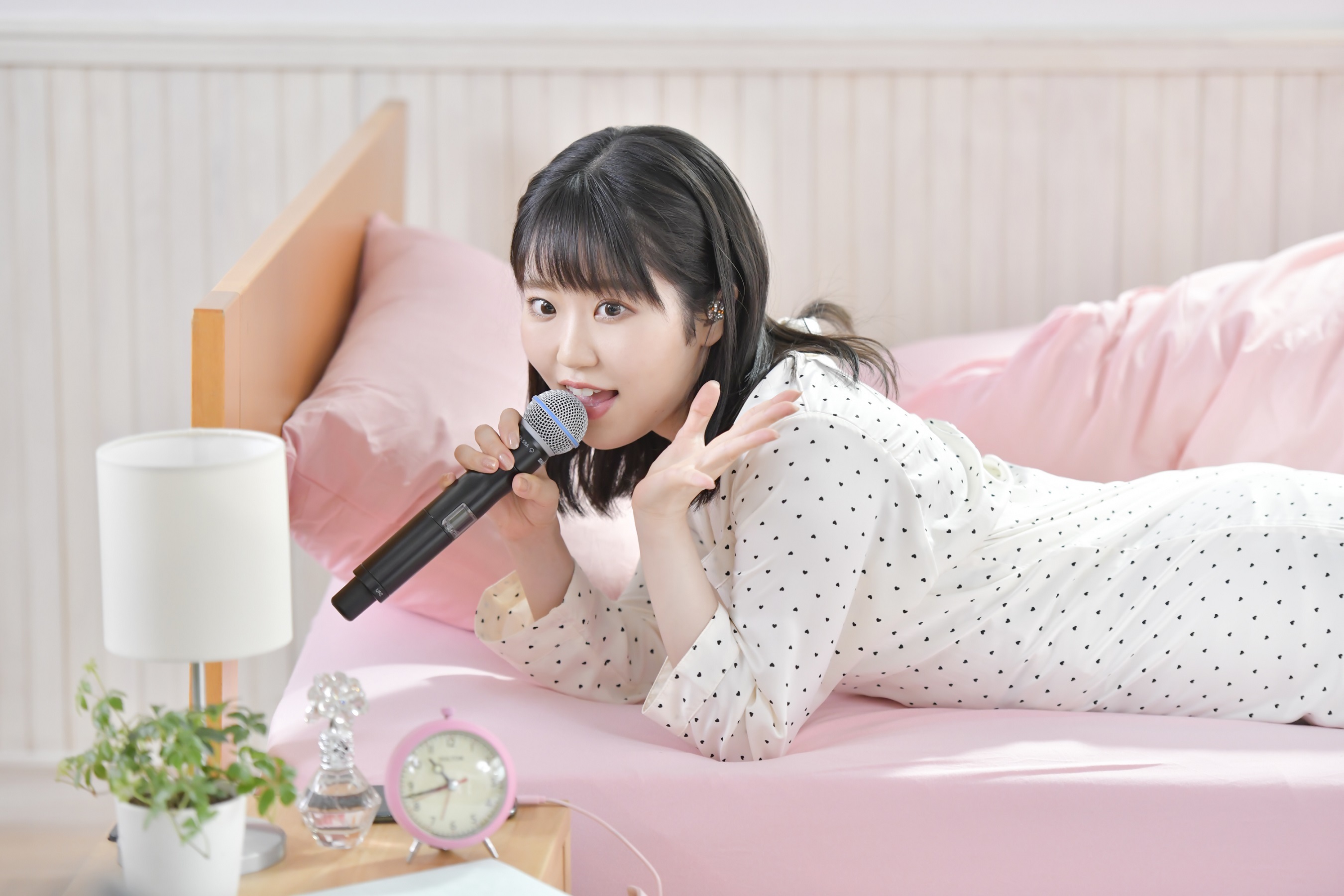 今回の配信ライブでは楽曲冒頭のアラーム音とともに目覚ましを止め、ベッドから起き上がる”off”な東山奈央のパジャマ姿から始まる。歌詞にあわせてスタンドライトのオンオフが切り替わったり、携帯電話で自撮りをしながら歌っているようなワンシーンがあったり、オンラインならではの細かい仕掛けが盛り込まれたライブ演出は、まるでMUSIC VIDEOを観ているかのような完成度だった。