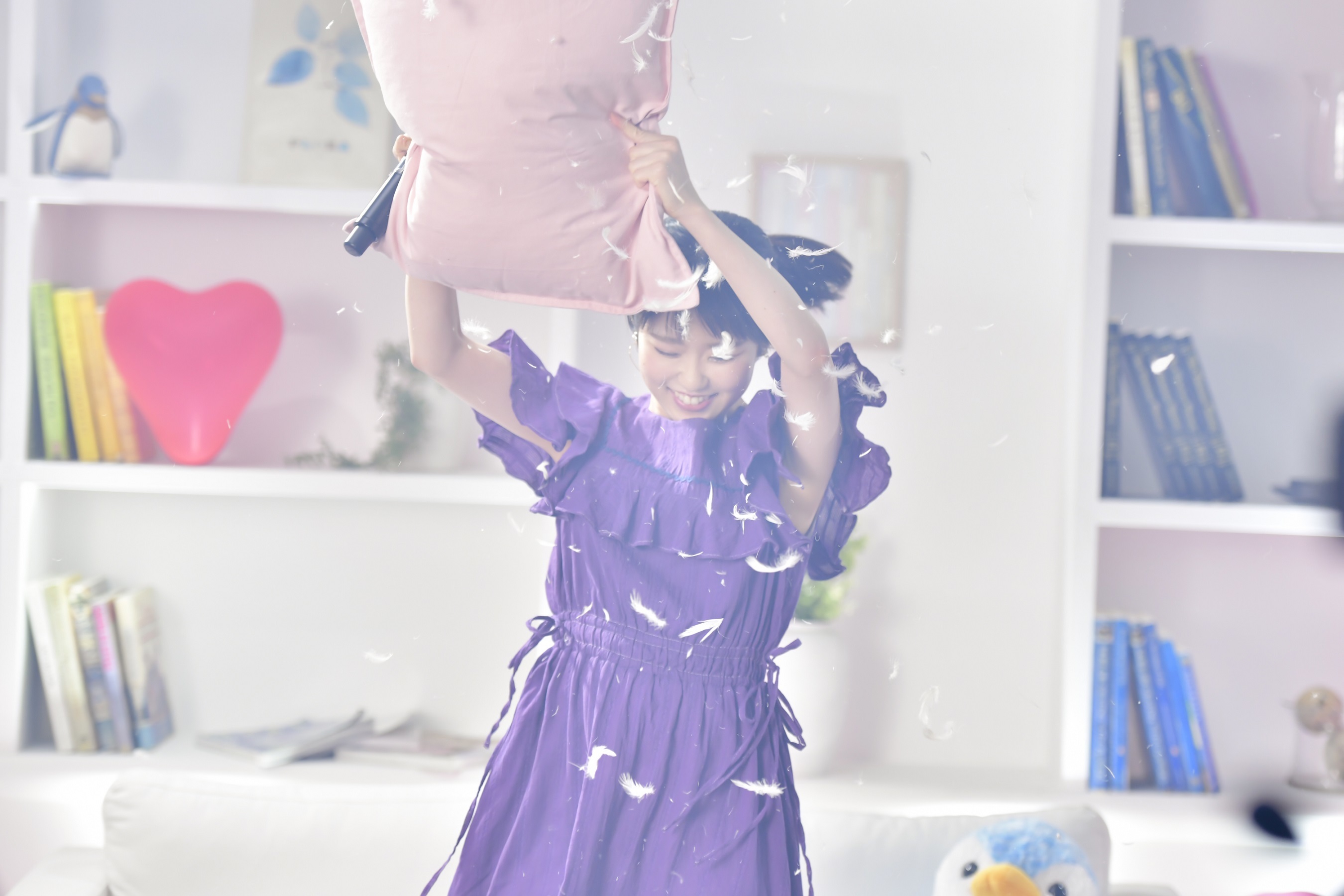 続いて披露されたのは“恋愛にときめくoff”がテーマの「プロローグ」。曲の冒頭で東山がカメラにクッションを押し付け、そのクッションを外すと瞬間移動したように先ほどまでいたはずのベッドルームがハートの風船で彩られたリビング空間に様変わりする。