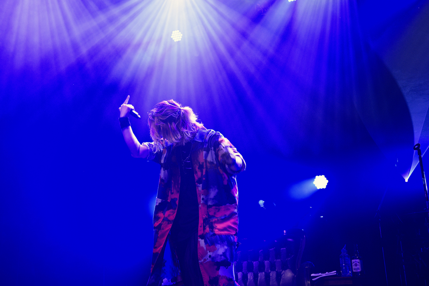 バンドメンバー、スタッフ、そして会場に足を運んでくれたオーディエンスへの感謝をあらためて口にしてのち、ソファに腰掛けたまま余裕で歌い始めたのは「コールボーイ」。ほぼ全編英詞の「About me」では、ハンドマイクで歌いながらステージを右に左に動き、オーディエンスひとりひとりの姿を目に焼き付けようとする姿も印象的だった。