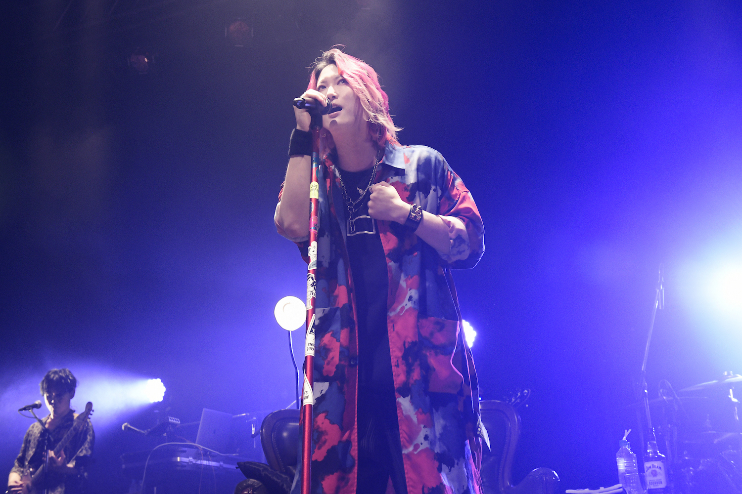 いよいよあらきが登場、「ぶっとばしていきましょう!」と気合いたっぷりに、『UNKNOWN PARADOX』のリード曲「UNKNOWN PARADOX」へ。満ち満ちている突破力や高揚感、<散々聞いてきた 言葉がこれからは 僕を加速させるだけ>という反骨精神顕著なフレーズは、どうしたってオーディエンスの心を突き動かす。声は出せなくても、拳を振り上げたり、頭を振ったり。あらきのイメージカラーである赤を灯したペンライトが数多揺れる光景を目にするのも久々で、ぐっときてしまう。