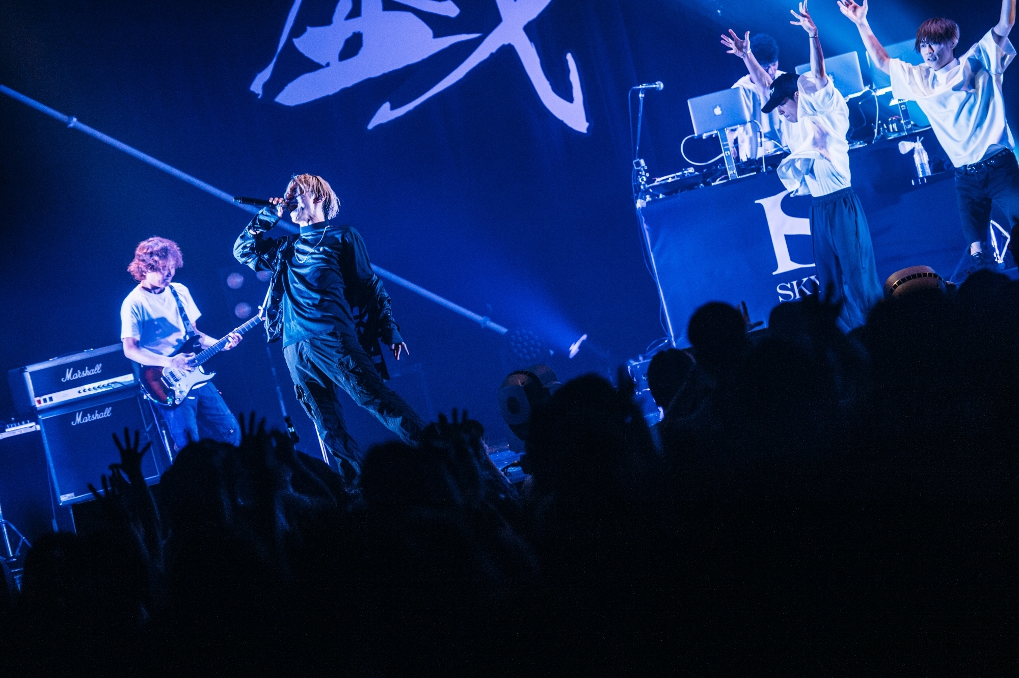「地元である関西で、親友、SKY-HIと対バンがやれることを本当に誇りに思います。ヒップホップを好きでロックに興味ないとか言うてるそこの君たち、今日はロックで惚れさせます!」
