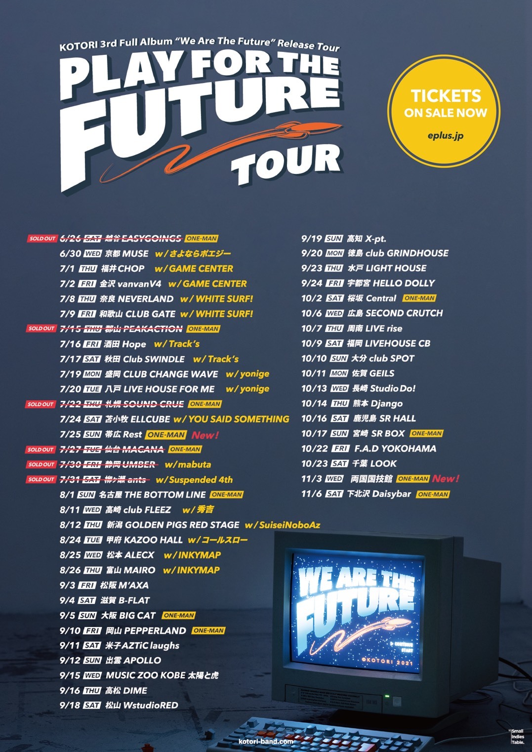 『PLAY FOR THE FUTURE TOUR』は、KOTORIの新アルバム『We Are The Future』リリースに伴い開催されるツアー。47都道府県、全50本を回り、セミファイナルは両国国技館でのワンマンライブが決定している。