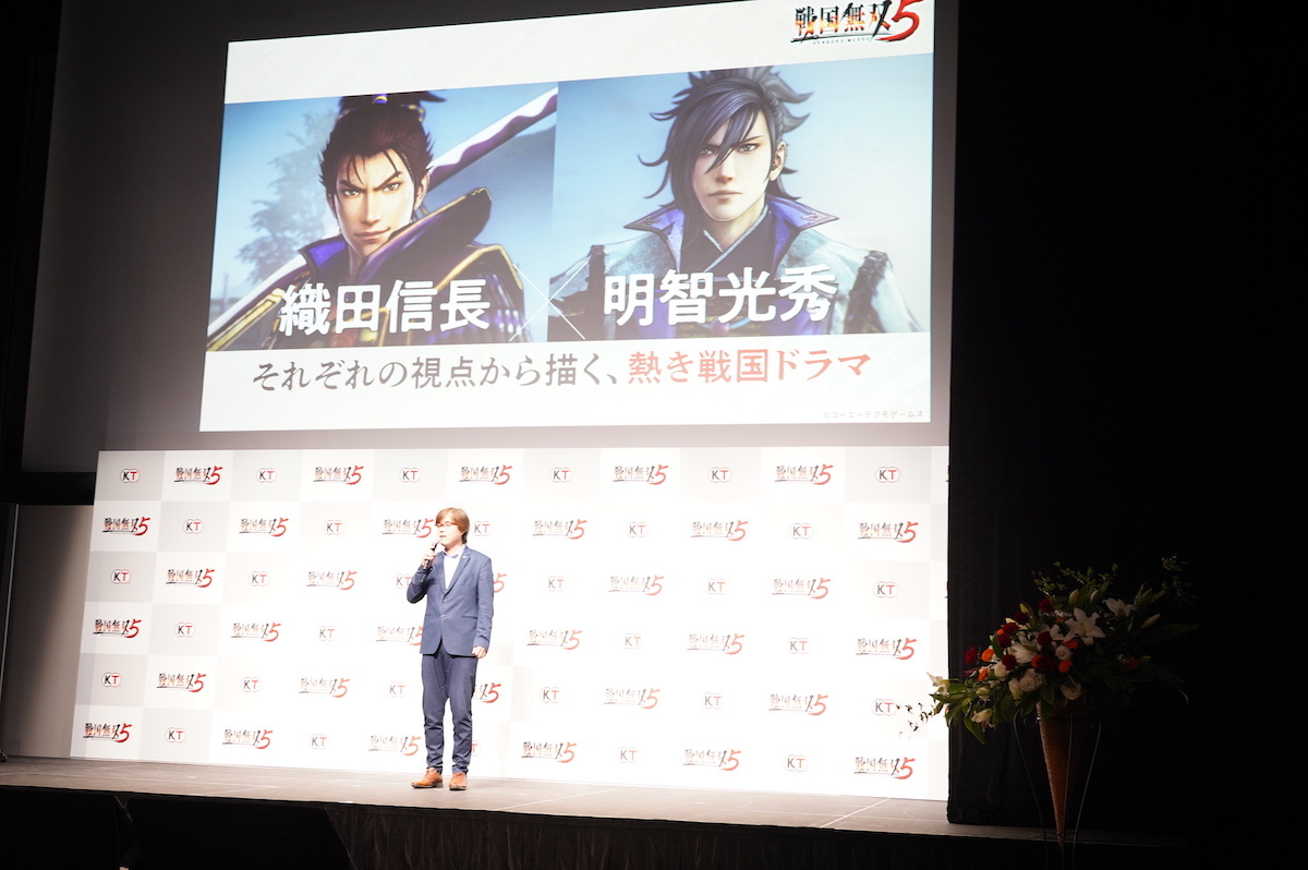 鯉沼氏は『戦国無双5』について「今回は、ストーリーとビジュアルを一新し、主人公は織田信長と明智光秀の二人になります。さらに、若き日の徳川家康なども登場し、新たな戦国無双が始動しました」と説明したところで、EXILEのAKIRA、SHOKICHI、白濱、そして女優の大原が加わり、作品の魅力を語っていくことに。