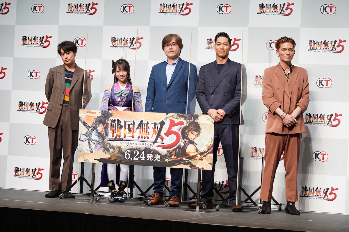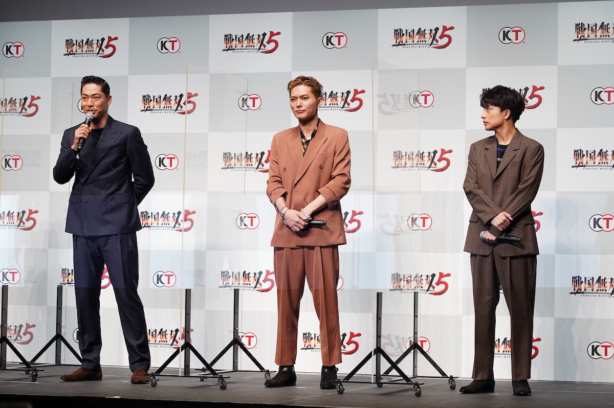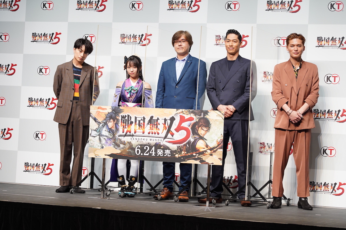 「戦国無双」シリーズ7年ぶりのナンバリング最新作『戦国無双5』の完成発表会が行われ、株式会社コーエーテクモゲームス代表取締役社長で『戦国無双5』プロデューサーの鯉沼久史氏と、テーマソング「One Nation」を担当したEXILEメンバーのAKIRA、SHOKICHI、白濱亜嵐、そして大原優乃が登壇した。