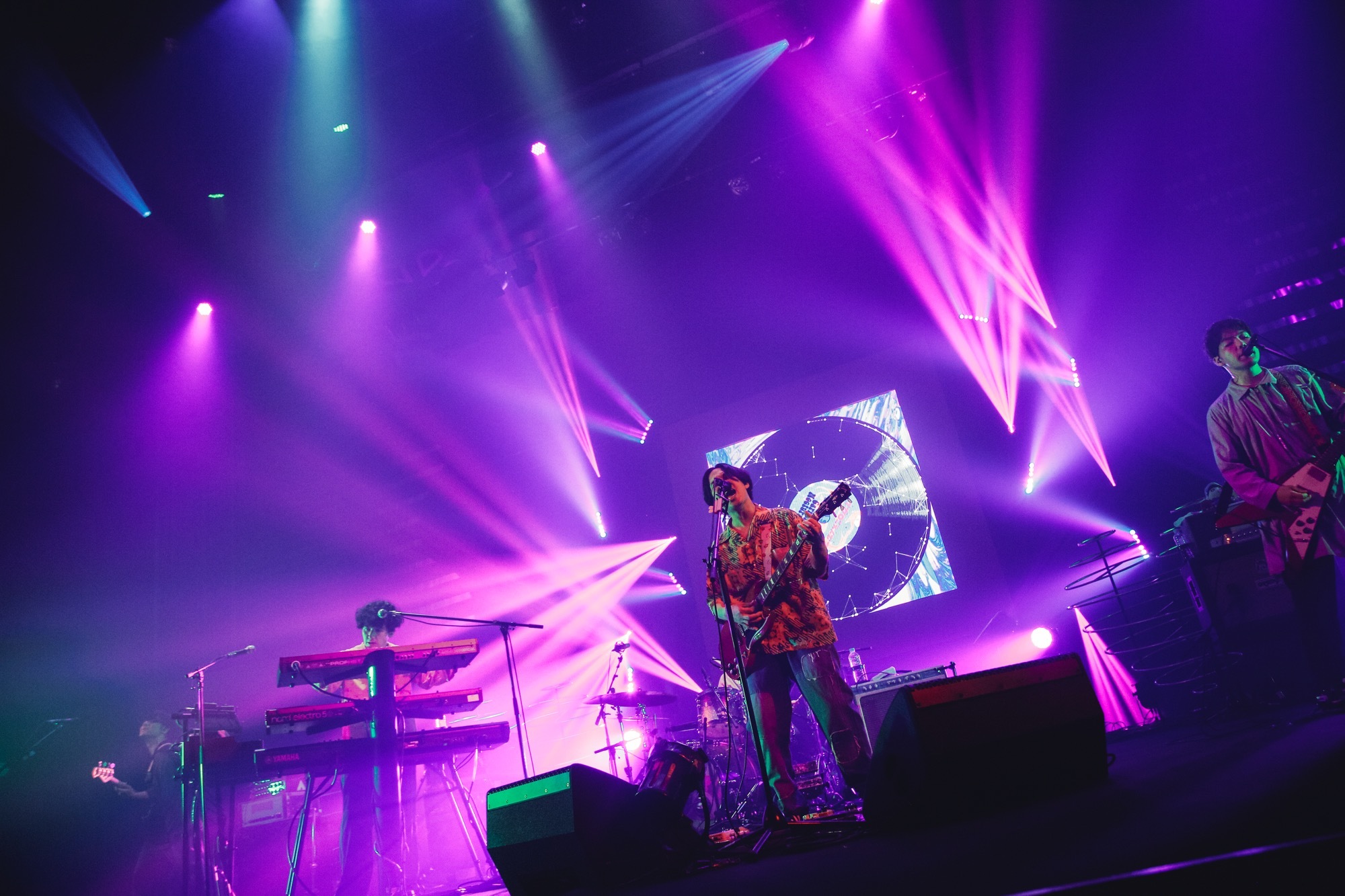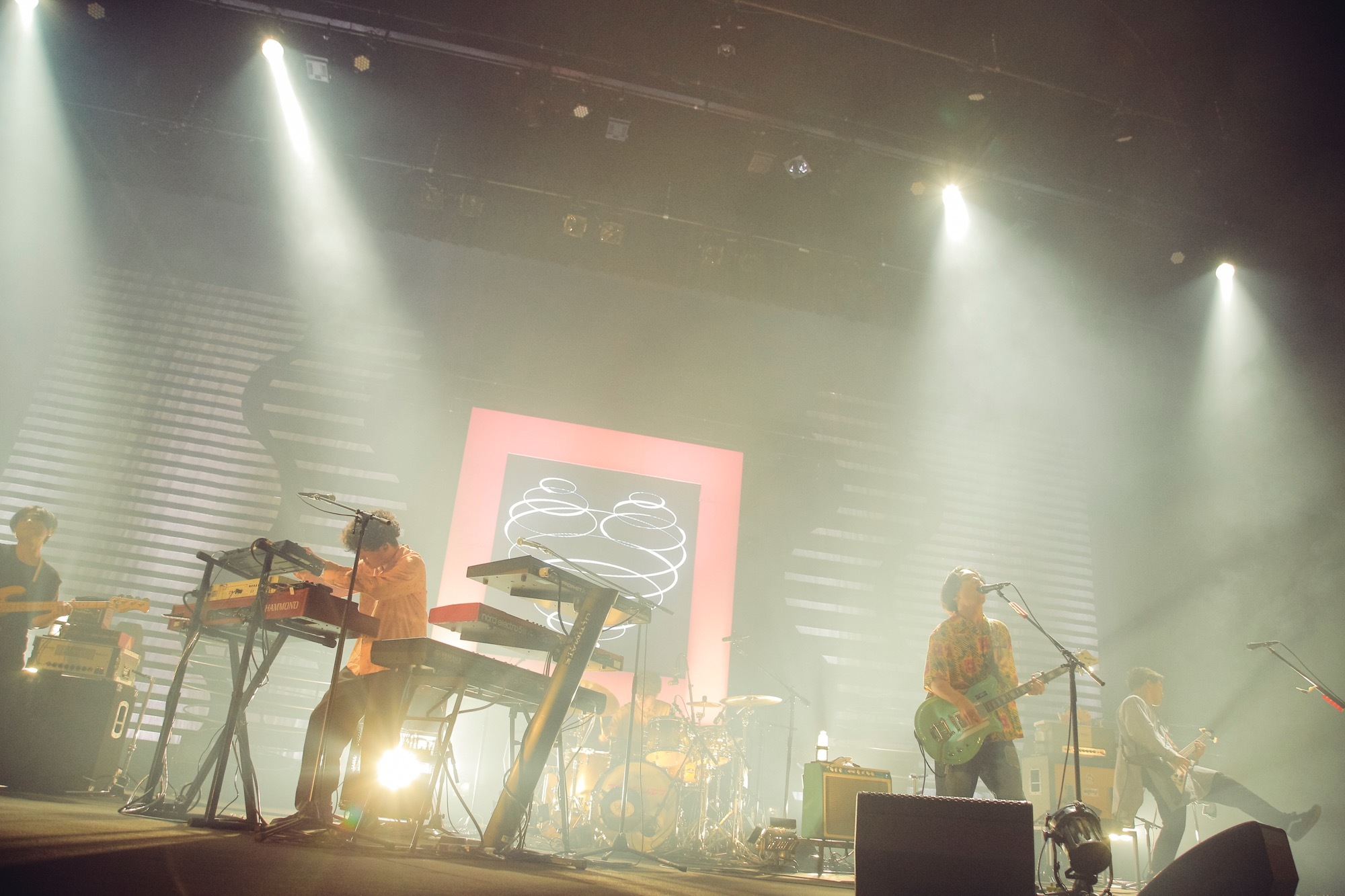 彼らのポップセンスを凝縮したようなアンセム「ブルーベリー・ナイツ」では、イントロでのそんな誘いもろとも広大なオリックス劇場を完全にロックオン。目まぐるしく展開していくスペクタクルなダンスビートが導く「カーペット夜想曲」といい、さまざまなサウンドを聴かせながら一貫してポップな楽曲群が、セットリストに積み重なるたび感動を増幅させていく。
