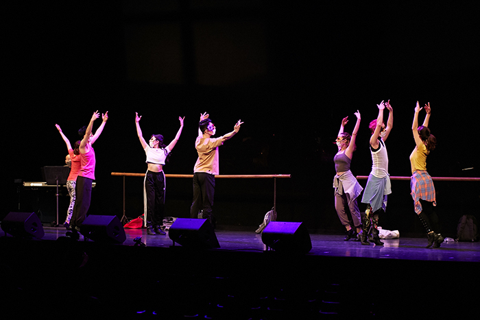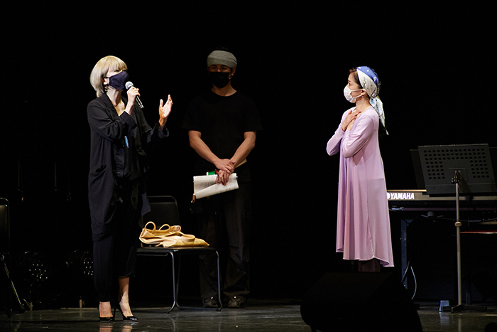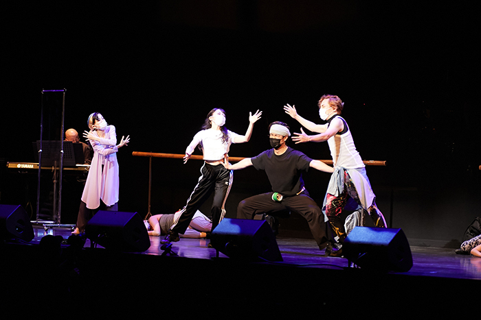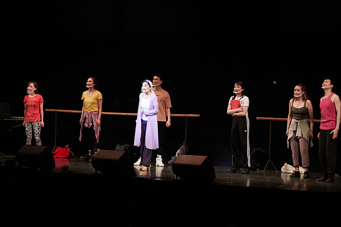 20分の休憩を挟み、2幕が始まる。冒頭は、サポートメンバーと島田らによる、15分ほどのオリジナルミニミュージカル『リハーサル』。バレエのバーや机が置かれ、そこが「稽古場」であることが分かる。『コーラスライン』のような作品かしらと勝手に想像していたが、ソーシャルディスタンスや消毒の徹底など、このコロナ禍における舞台芸術の創作の難しさをコメディタッチで描く。苦しさもあるけれど、最後には希望が持てる作品だった。