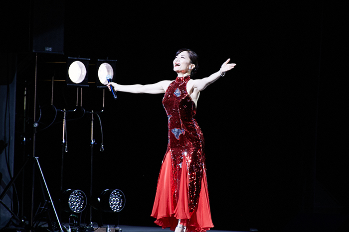Overtureとともに、幕が開く。赤いスパンコールのドレスを着た、島田歌穂が登場する。最初に歌ったのは『Hello Dolly』より「ハロー・ミュージカル」。曲の中に「この日が来るのを信じていた」という歌詞があった。まずはコンサートの開催ができたことを感謝し、喜び、楽しみましょうという、島田の思いが代弁されたような1曲だった。