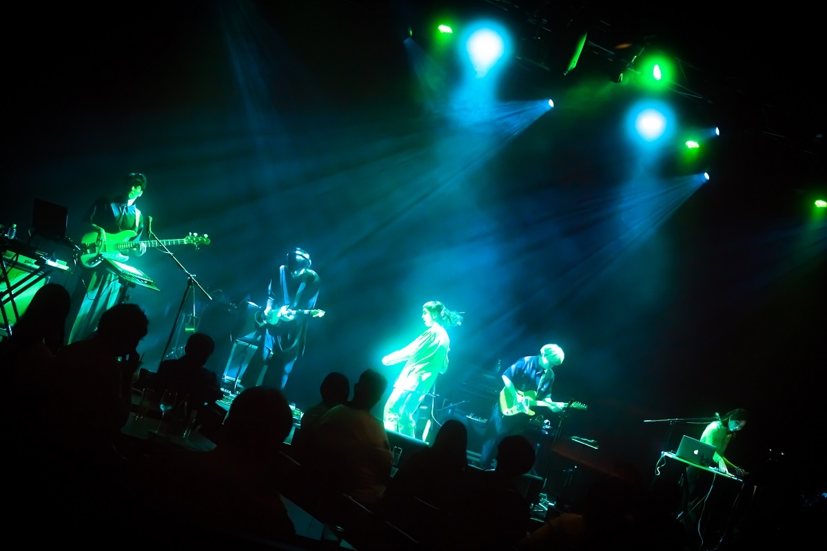 モノンクルの音楽は、音源で聴くとお洒落、知的、アダルトといったイメージが強いが、ライブは別物で、むしろ情熱的、躍動、骨太といったワードが頭に浮かぶ。「シチズン・クロノシー」CM曲として昨年リリースされた「Every One Minute」も、音源以上に推進力たっぷりの力強いファンクビートに体が揺れる。角田が手動でPushを叩きながら繰り出す、下腹に響く重低音がとても気持ちいい。