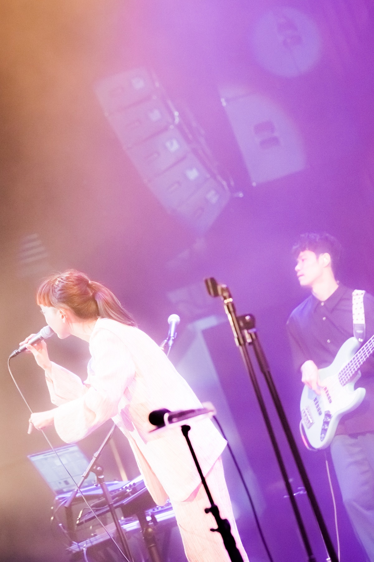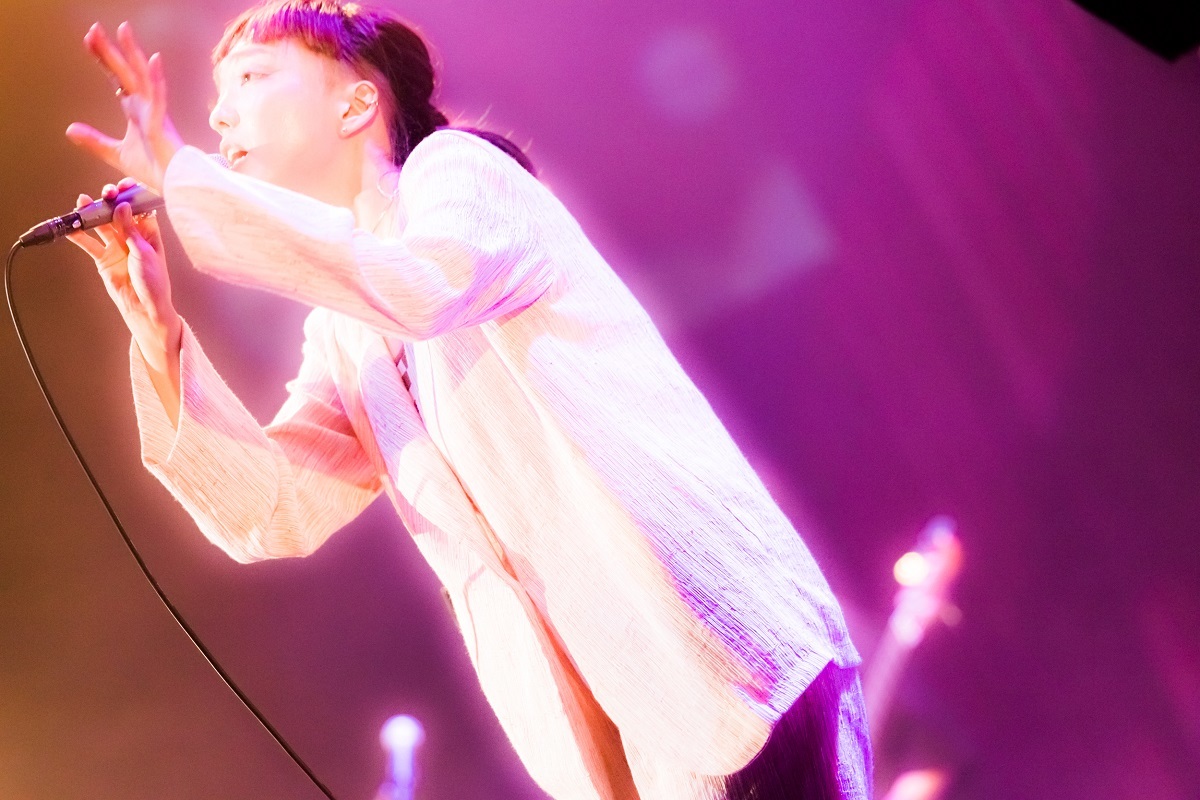 この日披露した12曲のうち、昨年から今年にかけてリリースした(する)新曲はすでに5曲。コロナ禍でも止まらない創作意欲の高まりは、それぞれの楽曲のクオリティの高さと、さらにボーダーレス化した音楽性の広がりからもはっきりと感じ取れる。SNSで話題のマンガを原作にして楽曲を書き下ろす「ヨムオト」プロジェクトと連動した新曲「GOODBYE」は、アコースティックギターを加えてフォーキーでメランコリックなムードたっぷりに。昨年のステイホーム期間中にリリックビデオのみで公開され、今年6月に配信リリースされた「音の鳴るあいだ」は、会えない時間の気持ちの繋がりを信じながら、どこまでも包容力豊かに。震わした音が鳴るあいだ、ひとつでも痛み忘れられるなら――。その歌詞はとても誠実で、あたたかい雨のように乾いた心にしっとりと沁み込んでゆく。