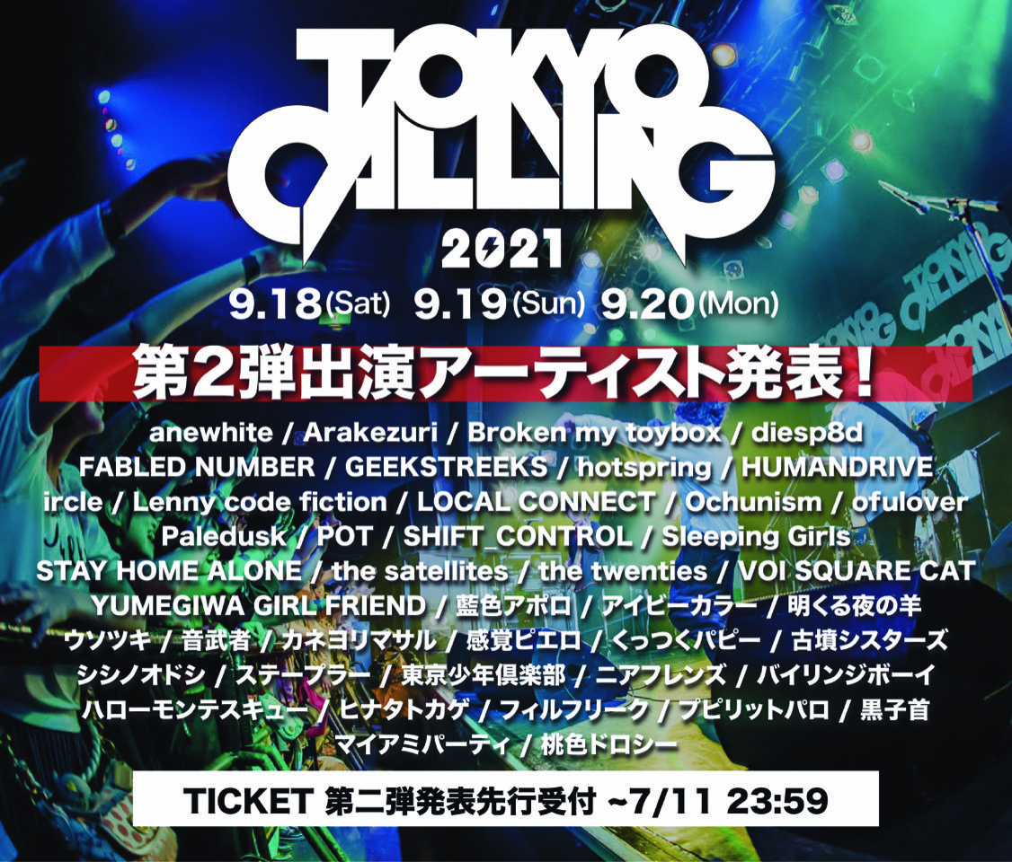 昨年は新型コロナウイルス感染症拡大の影響で、無観客のオンラインサーキットフェス「NIPPON CALLING」として開催された本イベント。今年は例年通り有観客のサーキットフェス『TOKYO CALLING 2021』として開催される。