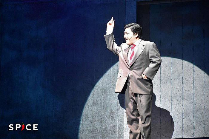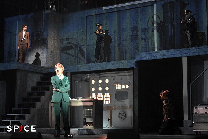 壮大なセットの最上部には、生バンドを配置。オープニングでは原作のアニメでおなじみのテーマ楽曲が奏でられ、降り注ぐサウンドに酔いしれた。“音楽劇”を冠している通り、歌唱やダンスシーンも随所に盛り込まれている。ストーリー展開と相まって心が躍る瞬間だった。