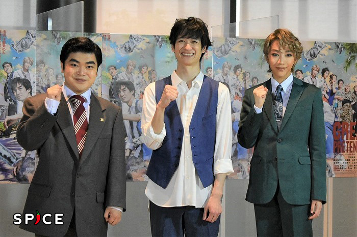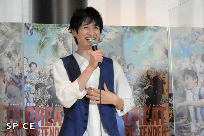 音楽劇『GREAT PRETENDER グレートプリテンダー』が2021年7月4日(日)、東京建物 Brillia HALLにて開幕した。原作アニメを手掛けた脚本家・古沢良太の監修、脚本・斎藤栄作と演出・河原雅彦により舞台化。開幕直前に行われたゲネプロと、主演を務めるKis-My-Ft2の宮田俊哉らが登壇した取材会の模様をお届けする。